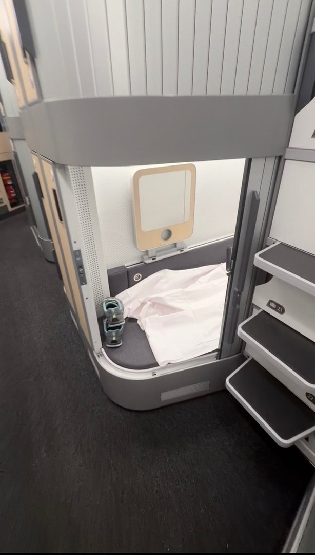 Ich hatte das erste Mal im Leben so einen Schlafsarg gebucht, wo man in einer winzigen Einzelbox schläft.