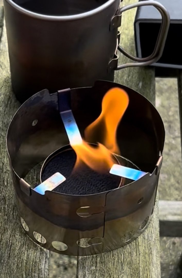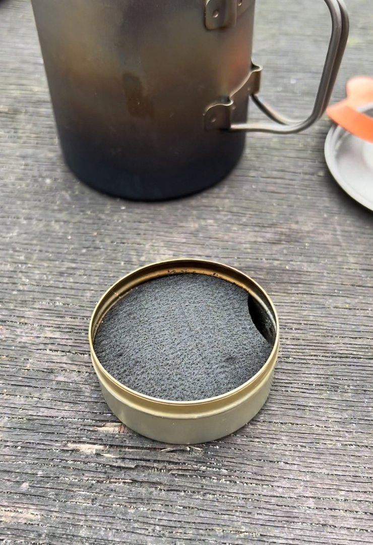 Er braucht allerdings 3cl, da sich bei 2cl Spiritus nicht genug ins außen gelegene Carbonfilz saugt und er sich dann echt schwer entzünden läßt. Bin überzeugt, das es, als er neu war, auch mit 2cl gut funktionierte. Vielleicht hat sich das Carbonfilz komprimiert, im laufe der Zeit? Who knows!