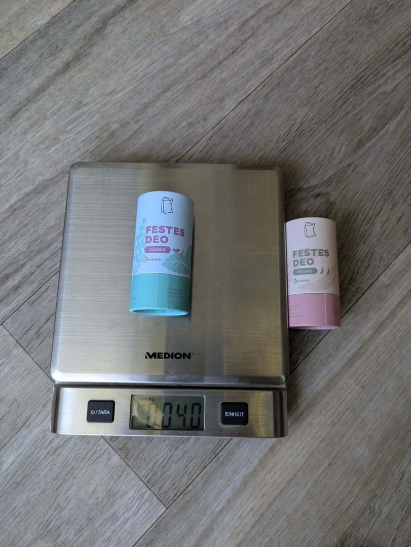 Wir werden bei unserer Wanderung in Schottland ab Juli die kleinen Deos von Duschbrocken verwenden. Sie wiegen mit Verpackung 40 Gramm und gibt es sowohl für Frauen und Männer.