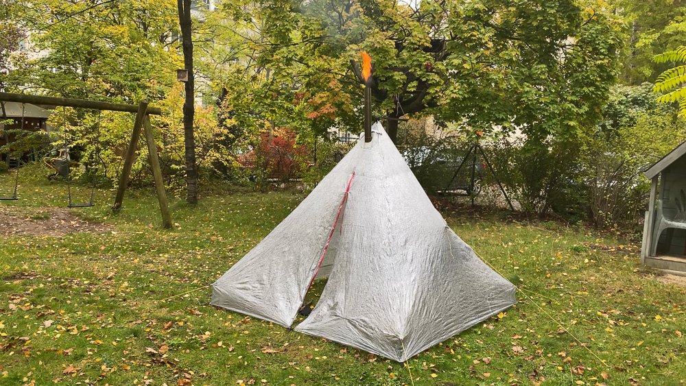 Das Hot Tent dazu habe ich vor sechs Jahren aus (ebenfalls nicht mehr lieferbarem 17g/m2) DCF selbst gefertigt und auf einer Wintertour erstmalig eingesetzt.