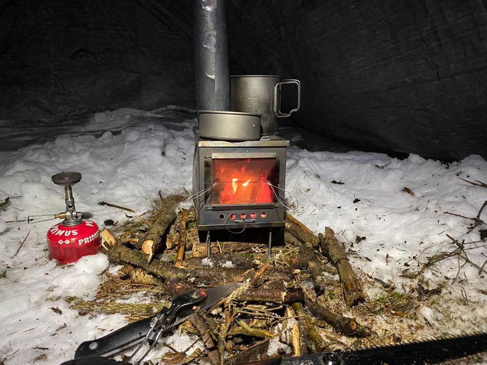 Es war tatsächlich schön warm und gemütlich. Mich hat aber schon die Tatsache an sich beeindruckt, dass man in so einem kleinen synthetischen Zelt überhaupt einen echten Ofen betreiben konnte...
