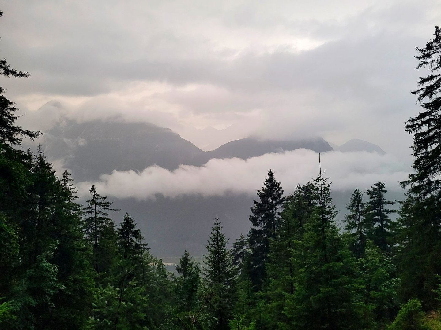 Kurz vor Mittenwald hörte es endlich auf zu regnen und ich hatte nochmal einen schönen Blick auf die umliegenden Berge.
