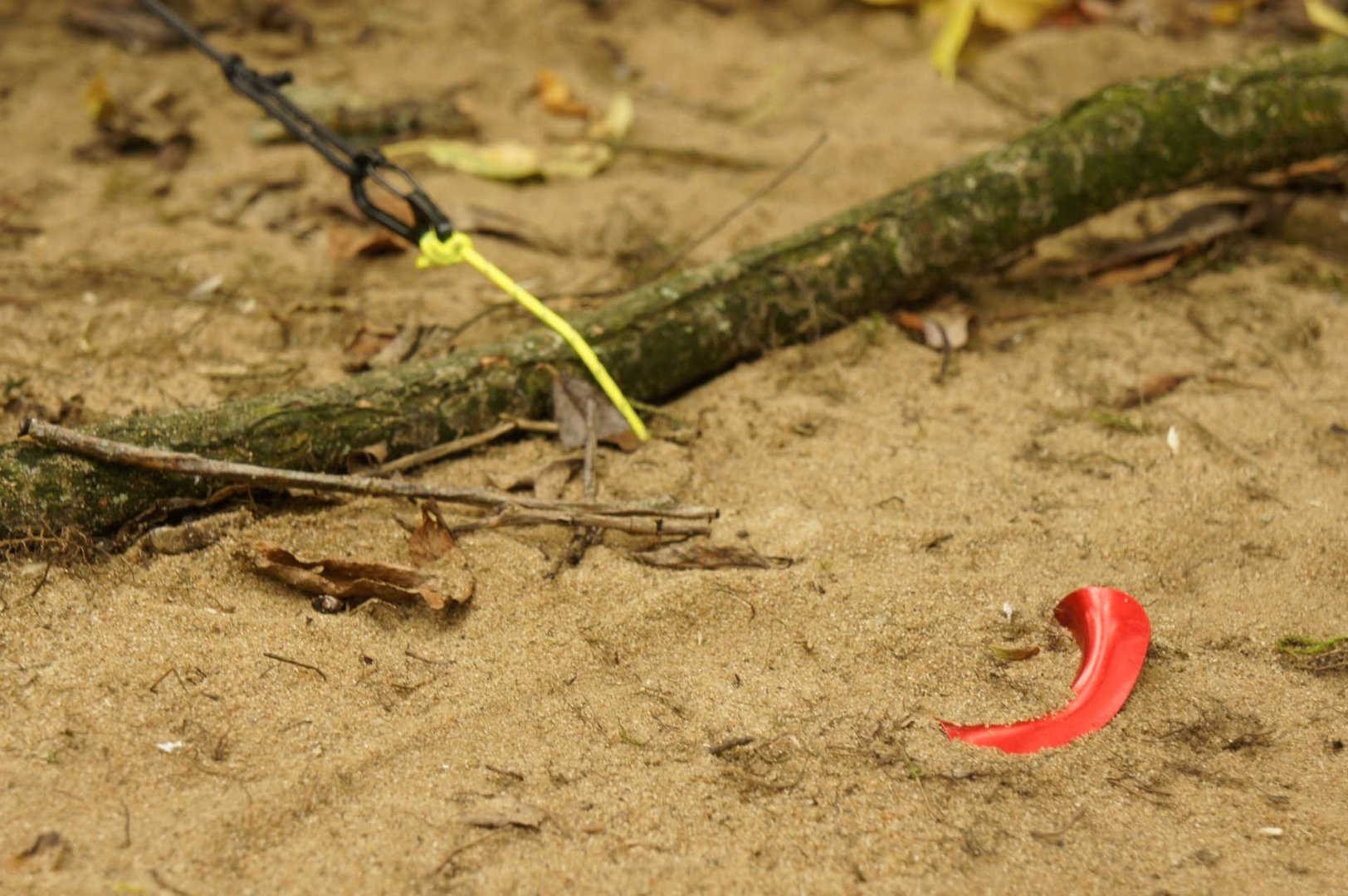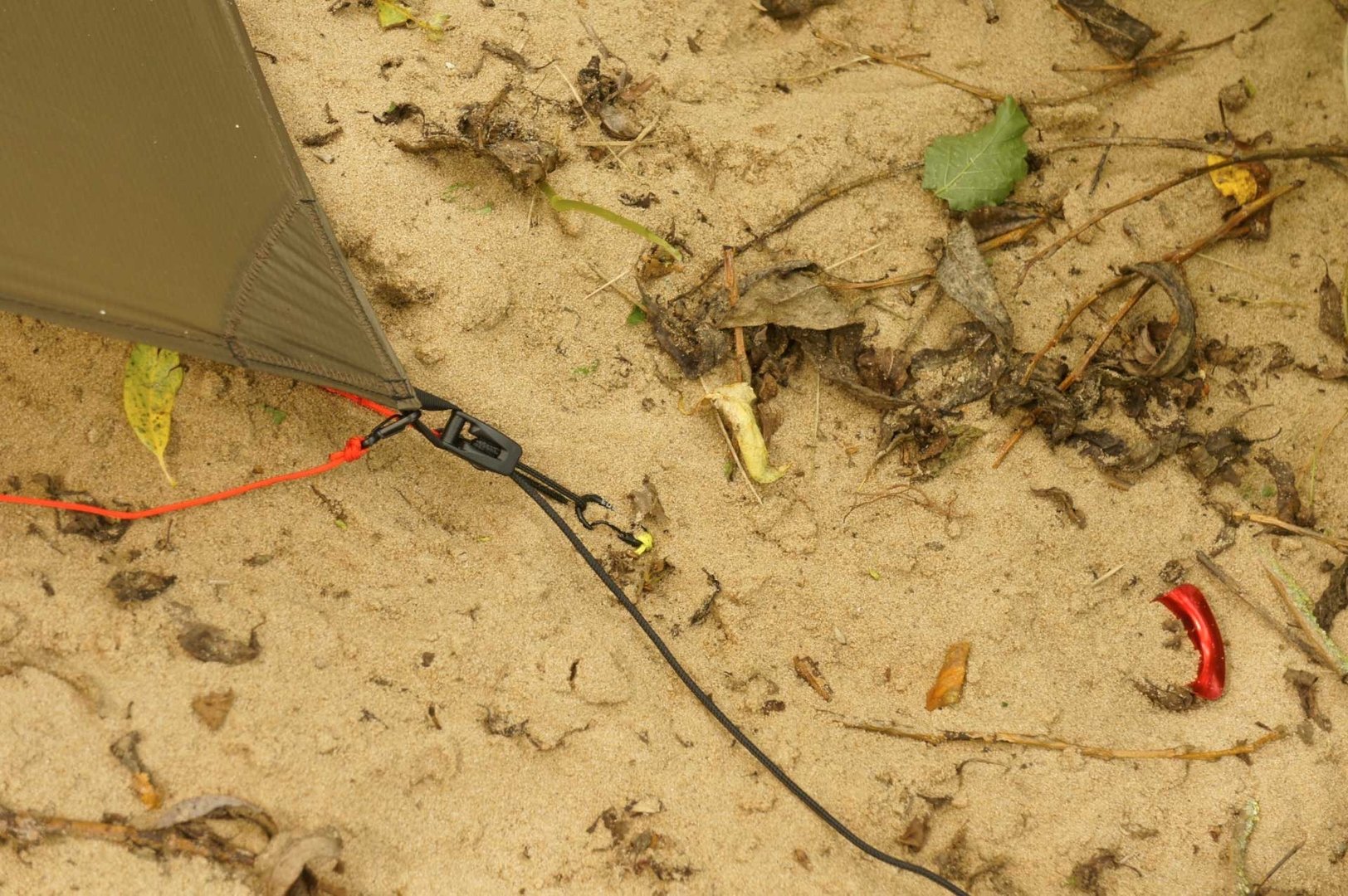 und vergraben, dann die Kordel ans Zelt oder Tarp.