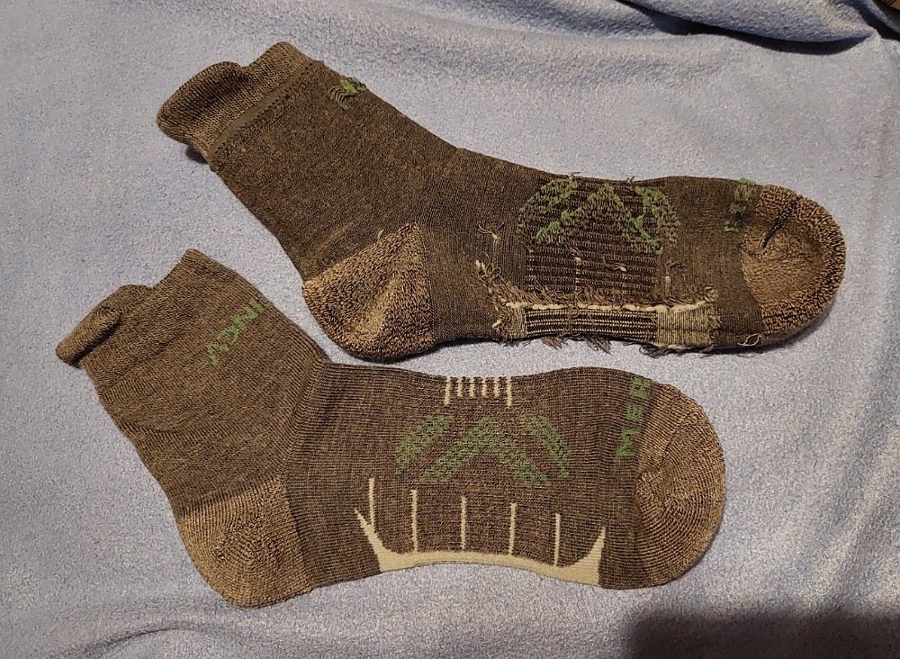 • Bei mir halten Darn Tough eigentlich recht lange, mein erstes Paar dürfte ü1000km haben, wird jetzt aber doch langsam dünn, für Socken mit Merinoanteil aber hervorragend.