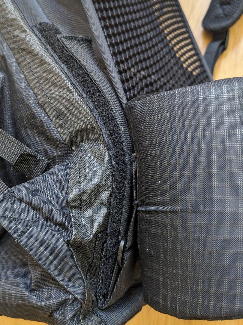 Wie geschrieben habe ich innen einen DCF Flick Hacken von ZPacks eingeklebt, um meinen Schlüssel idiotensicher zu verstauen. Habe auch Brusttasche und Bauchgurttaschen hinzugefügt, denke aber, dass die sich auf Dauer wegoptimieren werden. Eine Bauchgurtttasche für die "Daily Necessities" (Geld, Taschentücher etc.) wird wohl bleiben. Die Brusttasche ist eigentlich ein cooler Handyhalter, besonders wenn man selbiges aufladen möchte. Passt auch zusammen mit Akku gut rein. Allerdings steckt mein Handy meist in der Hosentasche. Die Brillentasche kommt auch zunehmend ins Hauptfach.