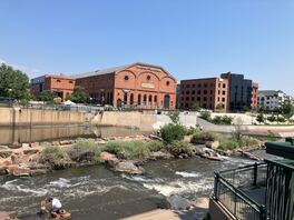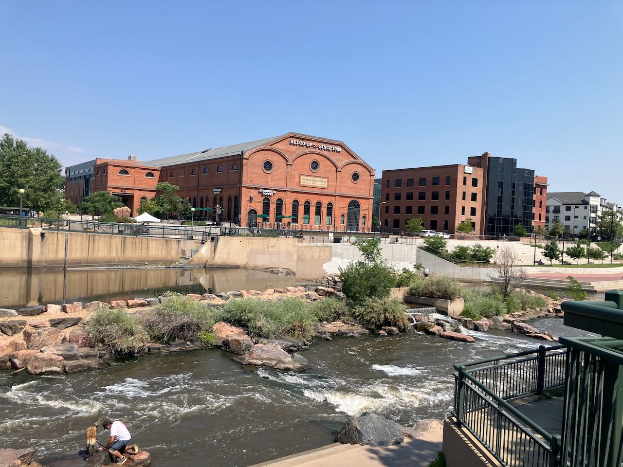 Das Programm für den nächsten Tag stand fest: einkaufen im REI, einkaufen im Safeway und umfüllen, in der Cheesecake Factory essen gehen. Der Weg zum REI durch die 16th Street (Fußgängerzone, kostenlose Trolleybusse, wir laufen, geht schneller), durch einen Park und über den Fluss. Der REI ist in einem alten Lagerhaus am South Platte River - ziemlich schick! Parks, Rad- und Fußwege am Fluss, ganz in der Nähe mündet der Cherry Creek in den South Platte River. Eigentlich könnte man auch hier auf dem South Platte River Trail beginnen. Er führt nach 40 Meilen zum Startpunkt des CT am Waterton Canyon. Aber unsere Zeit ist sowieso schon knapp.