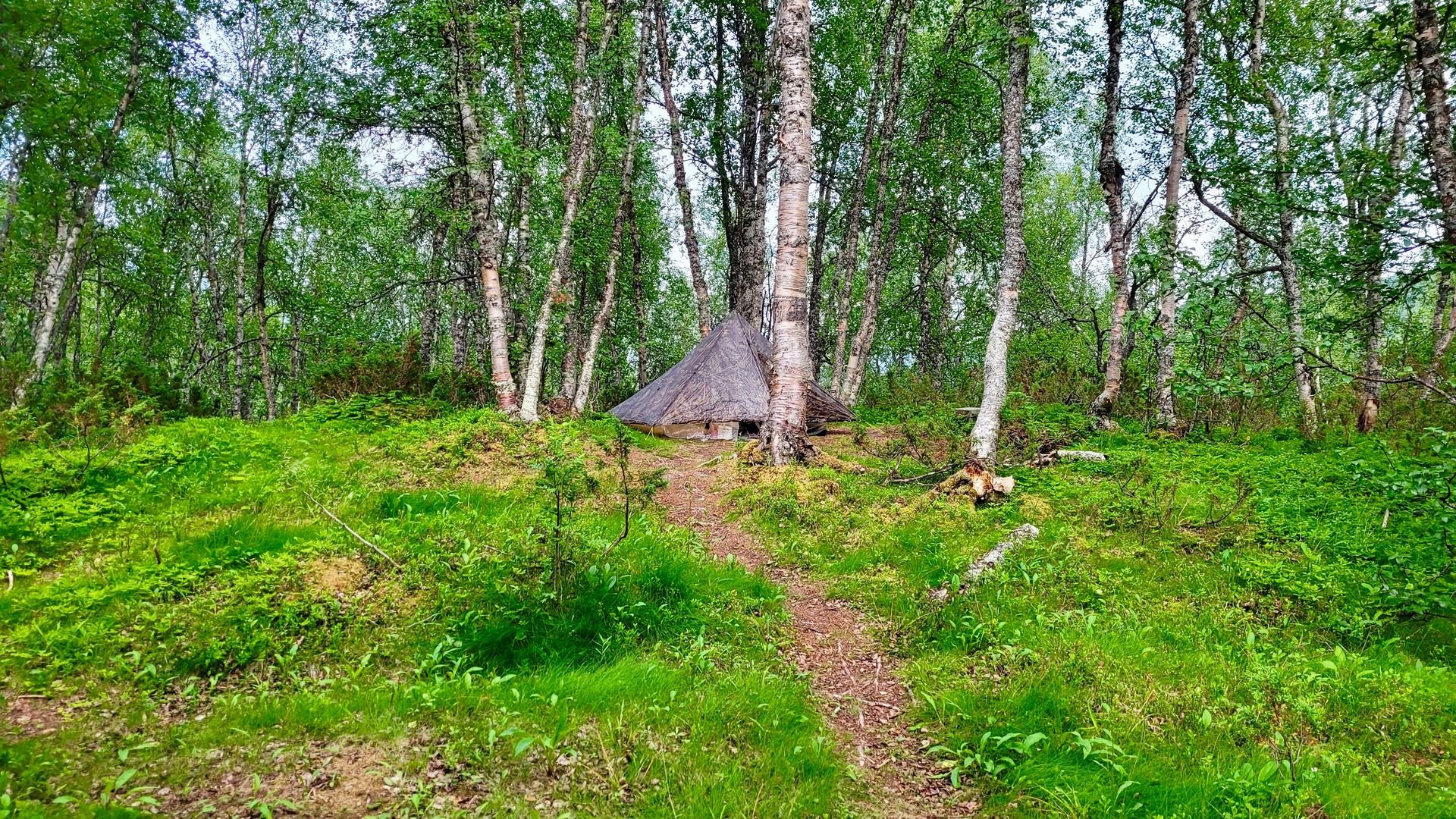 Endlich komme ich am Abzweig zur Sjnultje-Hütte vorbei. Der Weg hatte sich ganz schön gezogen und mein Energie-Level geht merklich gegen null, aber die letzten drei Kilometer aus dem Schutzgebiet raus will ich noch schaffen.