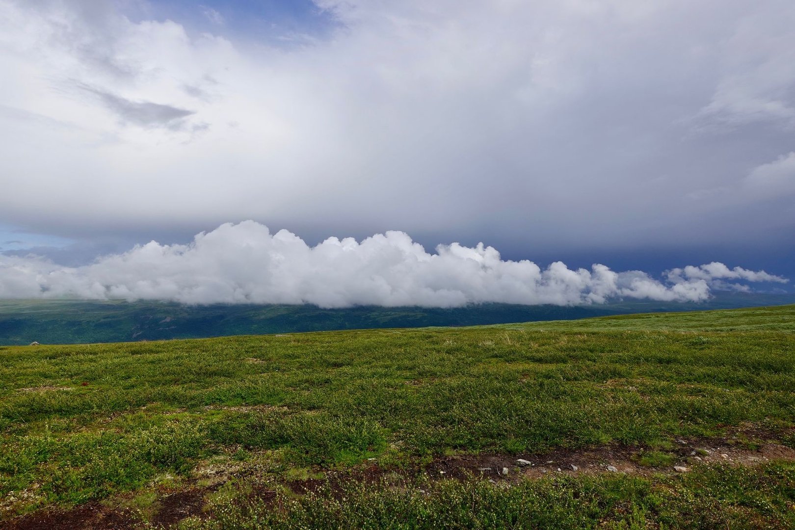Über der Baumgrenze ist die Landschaft wieder grandios, aber der Blick muss auf den Weg geheftet bleiben, um kein Stolpern oder Umknicken zu provozieren. Irgendwann am späten Nachmittag gucke ich über die Schulter und bemerke ein weiteres Gewitter im Anmarsch. Ich gebe etwas mehr Gas, da der Weg weg aus der Richtung des Gewitters führt. Bald verlassen mich die Kräfte und ich laufe nur noch bis zu einem Flüsschen, in dessen Nähe ein paar gute Campspots sind.