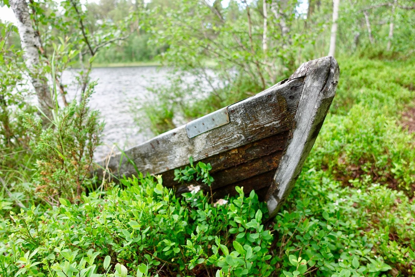 Gegen 9 Uhr packe ich langsam zusammen und warte am Bootsanleger auf G. Erste Herausforderung heute wird die ca. 400m lange Ruderstrecke sein, anschließend geht es weiter Richtung Vuonatjviken, einem Sami-Dörfchen. Kurz vor halb zehn höre ich stimmen, eine Dreiergruppe kommt angestürmt, schnappt sich eines der Boote und rudert los. Bleibt noch ein Boot für mich und G., bedeutet aber auch, dass wir dreimal rudern müssen, um wieder ein Boot an dieses Ufer zu bringen. Naja...