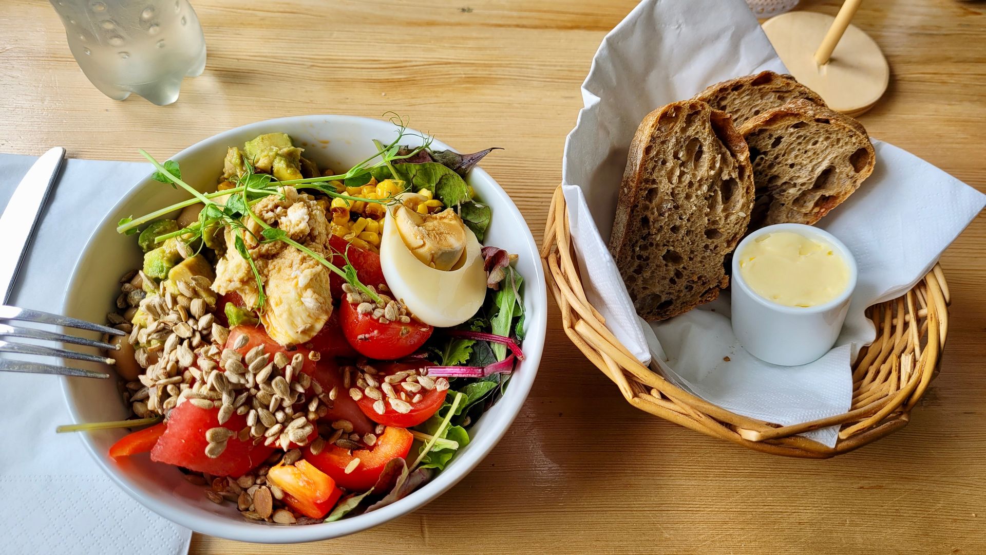 Dann ist es endlich Mittag und die Küche der Fjällstation macht auf. Wir bestellen und alle den gemischten Salat: