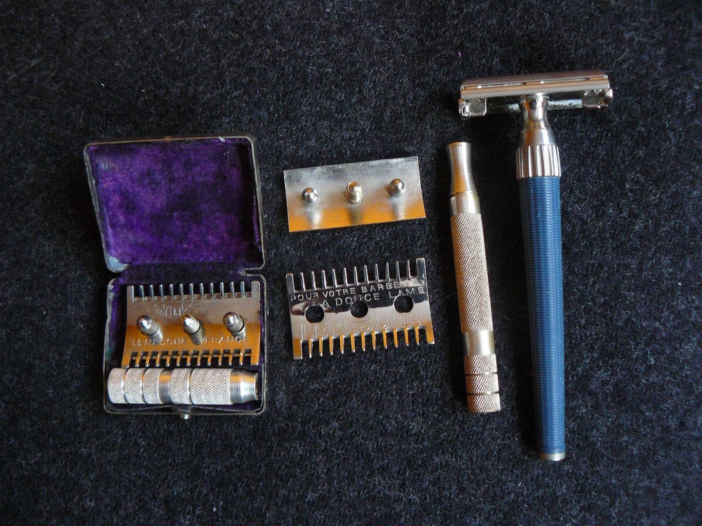 Als Teaser füge ich mal ein Foto ein. Das zeigt 3 Rasierhobel. Ein "normaler" in der Mitte, rel. schwer, einen Leresche Reisehobel und einen Gillette TTO aus den 70er Jahren.