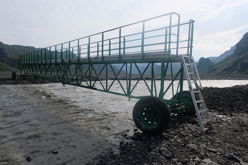 Fußgängerbrücken haben schon mal Räder, weil der Fluss nicht jedes Jahr an der gleichen Stelle fließt.