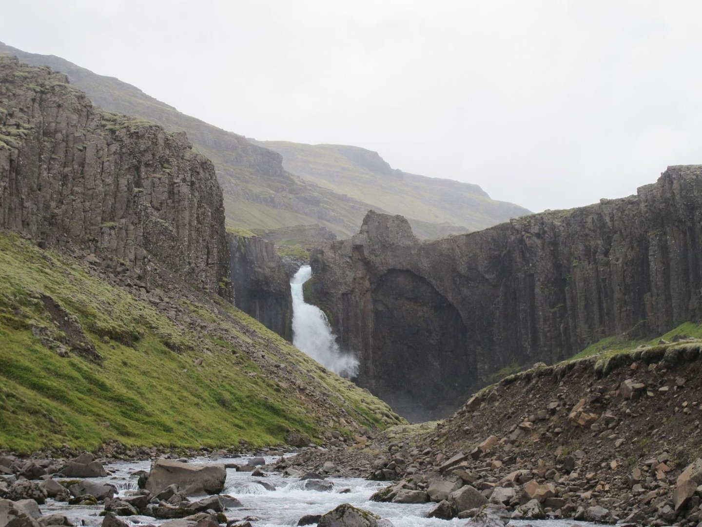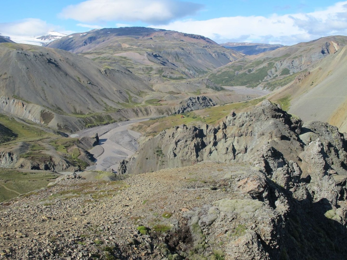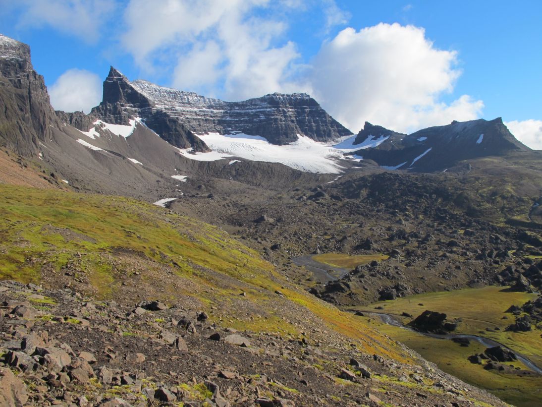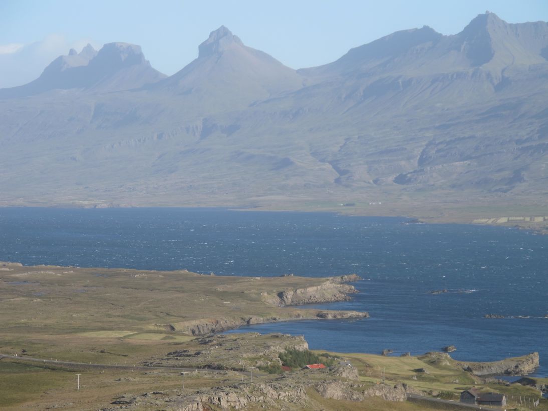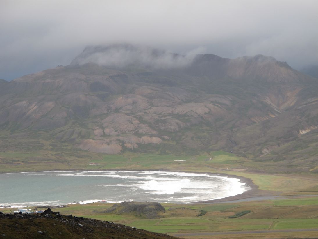 Zum Bauernhof getrampt und dann die F-Road lang (keine Ahnung, ob tatsächlich F-Road oder nur Fahrweg), die mit dieser Aussicht auf Múlaskáli aufhörte: