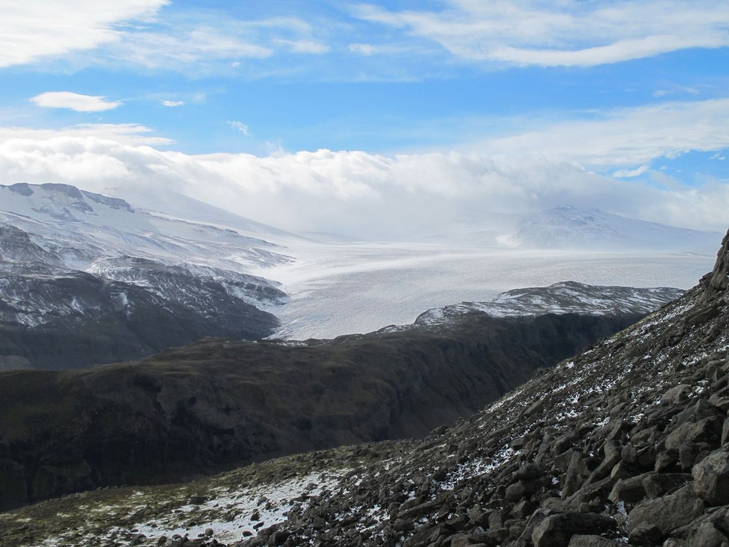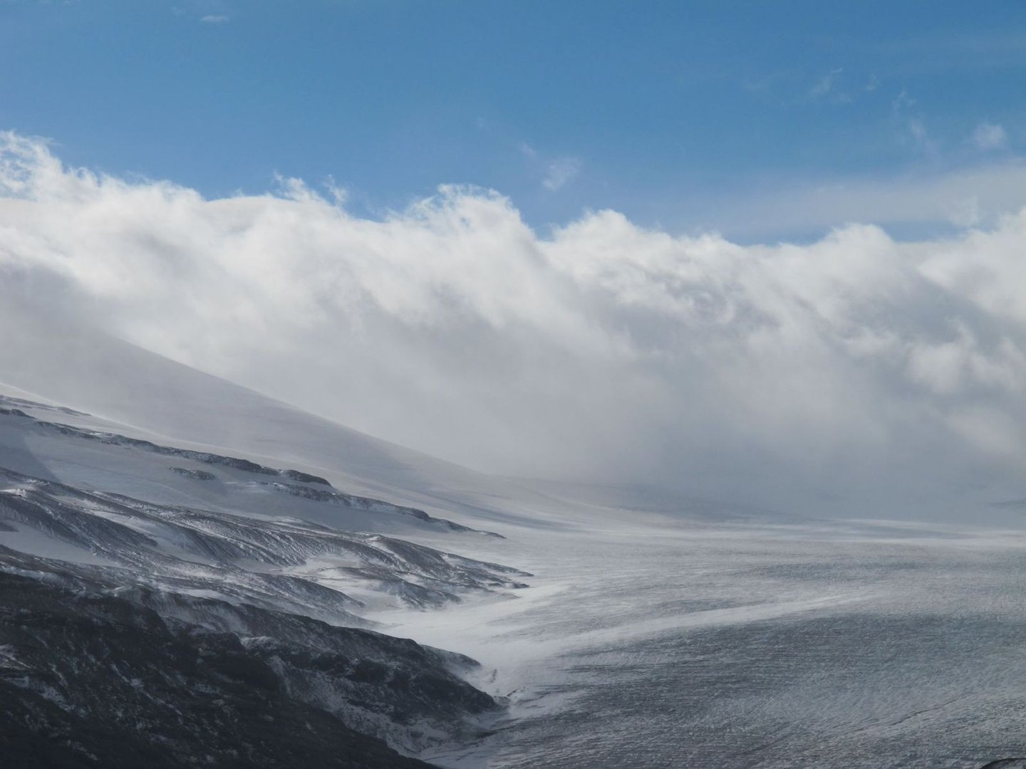 Man ist schon nah am Gletscher, über dem der abziehende Sturm noch nachtost.