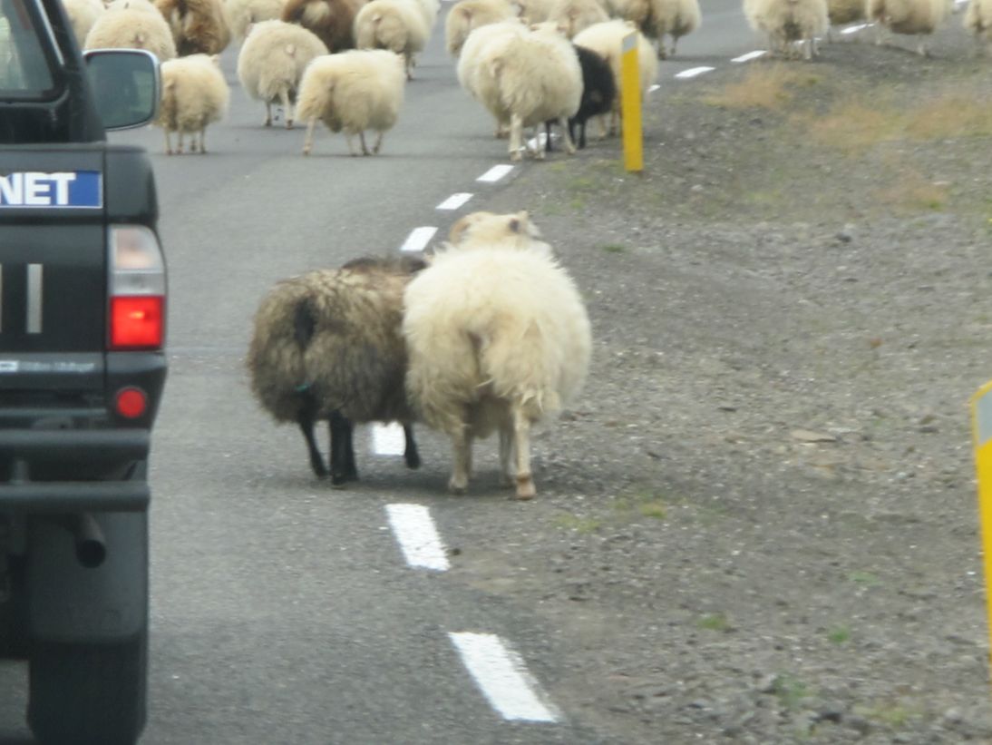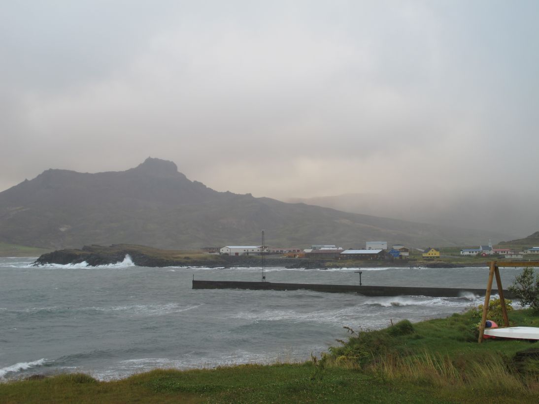 Bakkagerði. Wir waren im aufziehenden zweiten Herbststurm abgestiegen, die Busfahrerin hatte uns gesagt, es werde knapp. Pitschnass und Katja mit einem frischen Pflaster auf der Stirn ins offenstehende Hostel, in dem kein Warden war. Die nassen Klamotten aufgehängt und dann im Dunkeln in Sandalen bzw. auf Neoprensocken ins 2 km entfernte Restaurant gegangen, prima Fischsuppe, paar Drinks, wurde spät. Auf dem Rückweg fiel uns auf, dass mehrere Autos irgendwie ziellos mit Fernlicht im Dorf und auf der Passstrasse rumfuhren. Dann hielt die Busfahrerin in ihrem privaten Auto neben uns: es wurde gesucht und zwar nach uns. Man hatte befürchtet, dass wir auf dem Weg im Unwetter verloren gegangen seien.