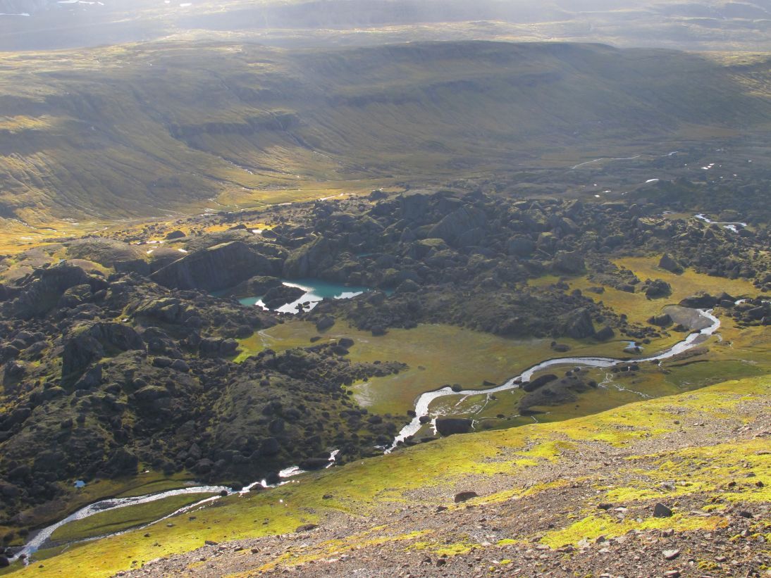 Gelernt: bei Herbststurm lieber in der Hütte als im Zelt, das dann so leicht sein kann wie man denkt, dass es mit dem Wetter unterhalb dessen klarkommt. Also viel leichter als die 2,8 Kg, die wir bei der zweiten Island-Tour für anderswo bergerfahrene Wander-Normalos dabeihatten.