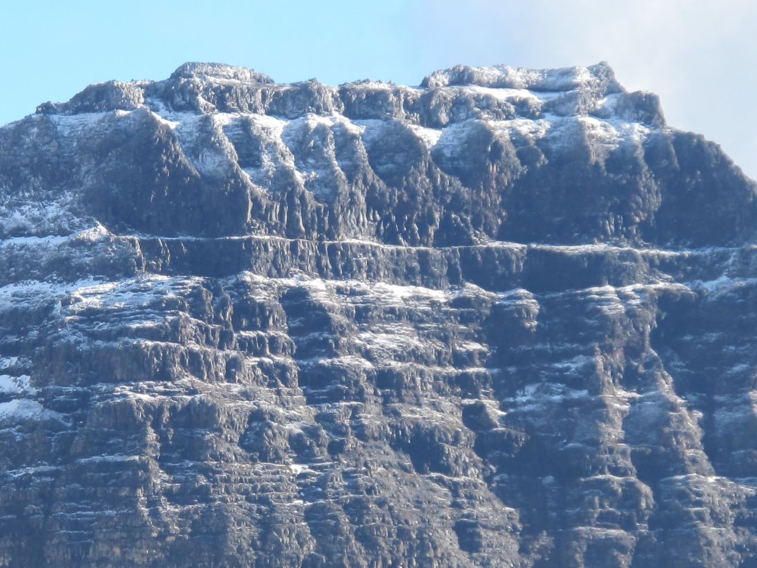 Nachmittags klart es auf, jetzt sieht man die Wand und es stürmt noch.
