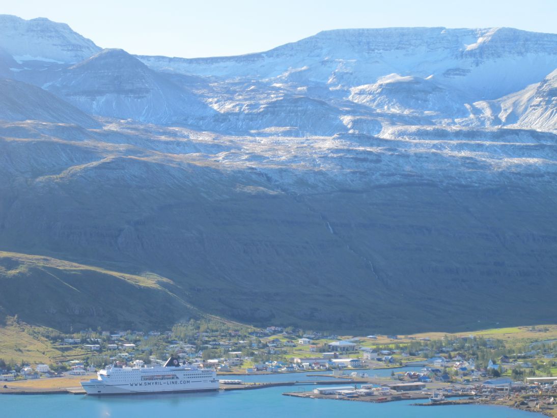 Fähre stand dann schon und zelt hatte in unserer Abwesenheit auf dem Camping 140 km/h (Zeitung) überstanden. Die norwegische Familie hatte eine ziemlich schlaflose Nacht. Wir machten noch einen der "7 summits of Seyðisfjörður", nämlich den einfachsten,