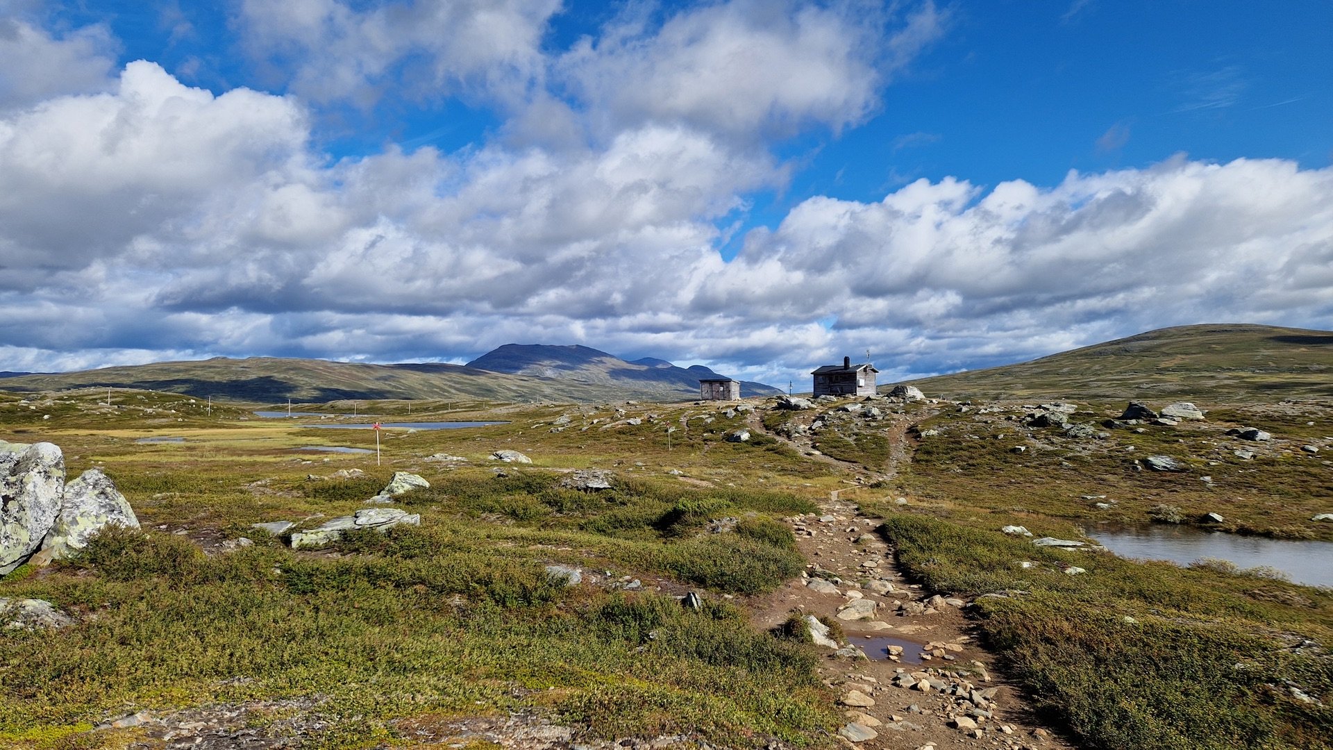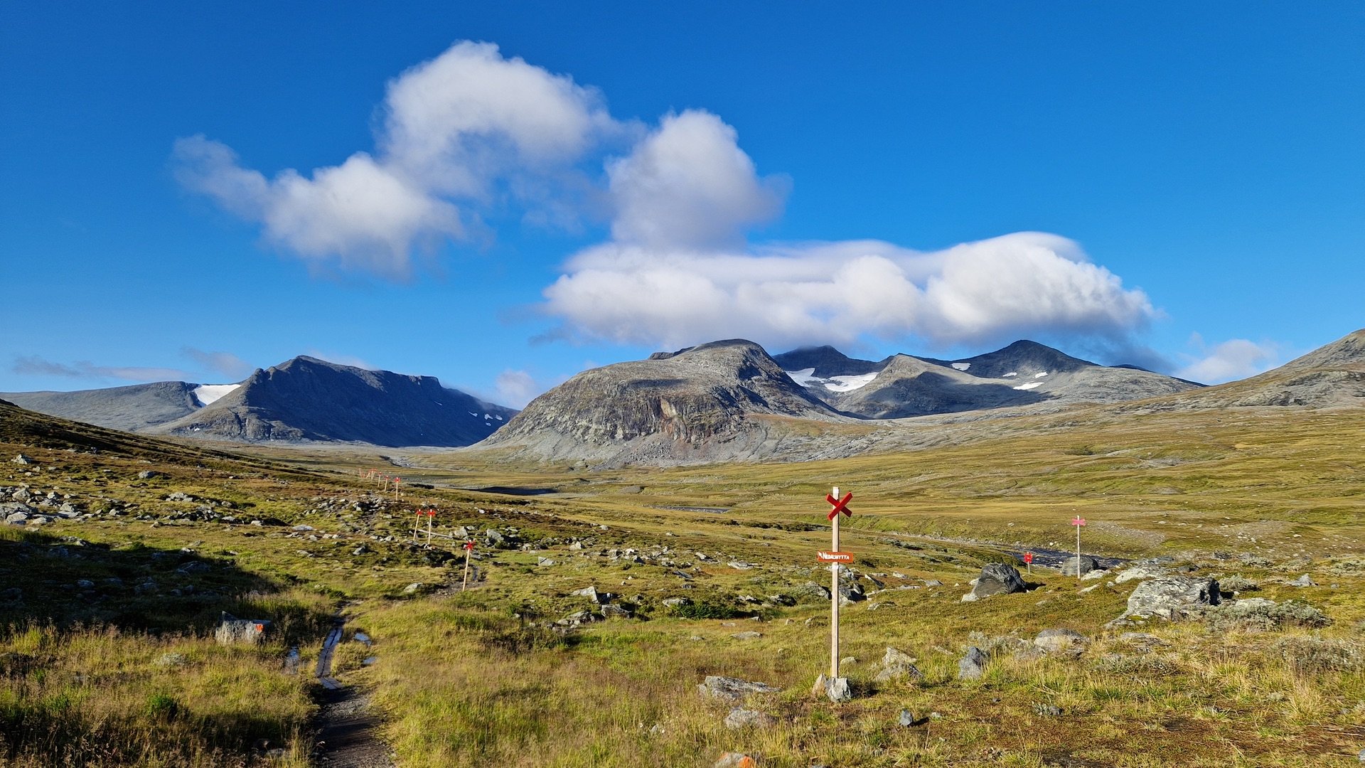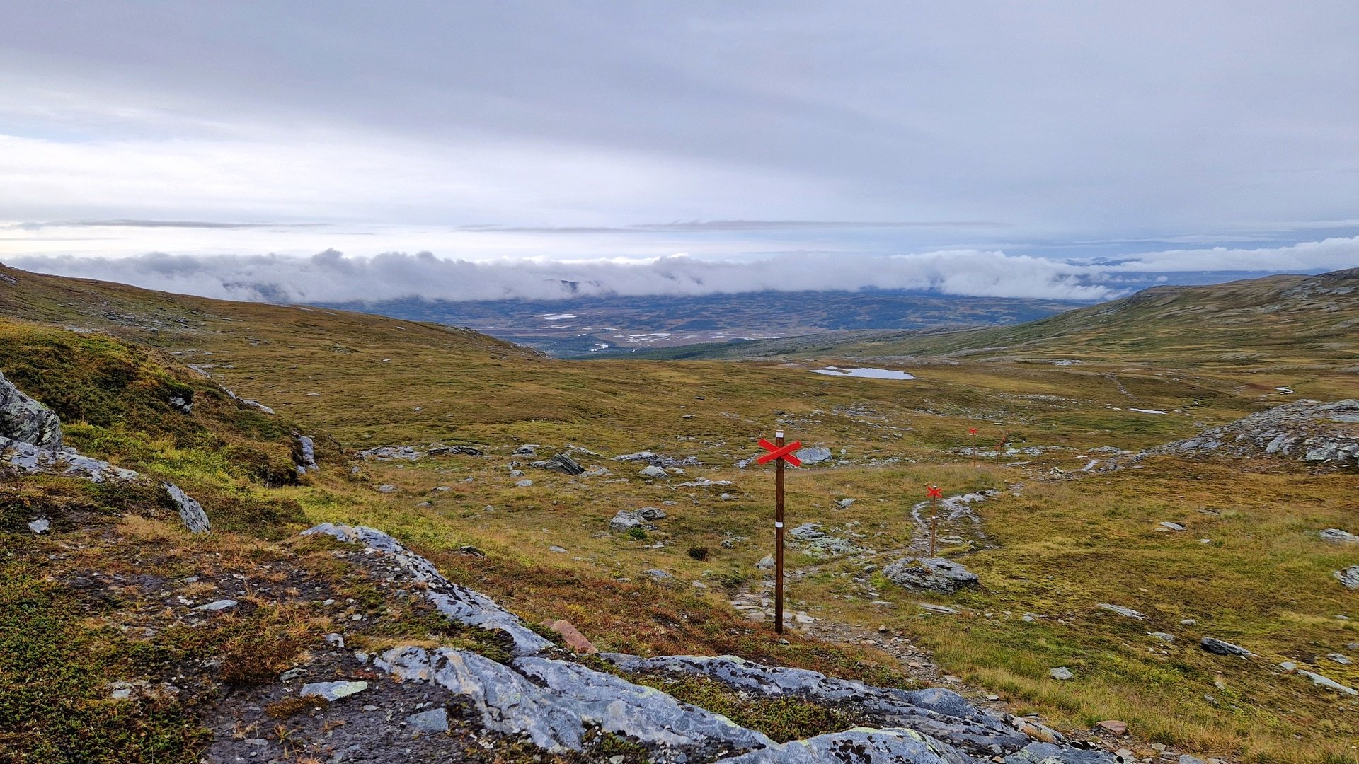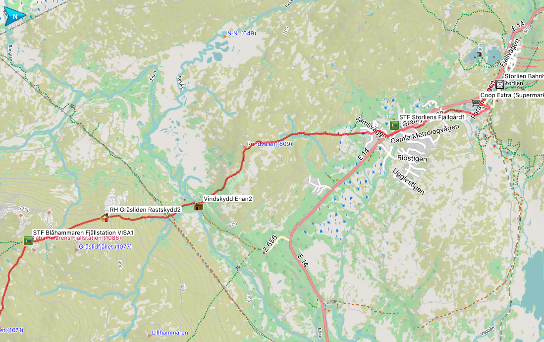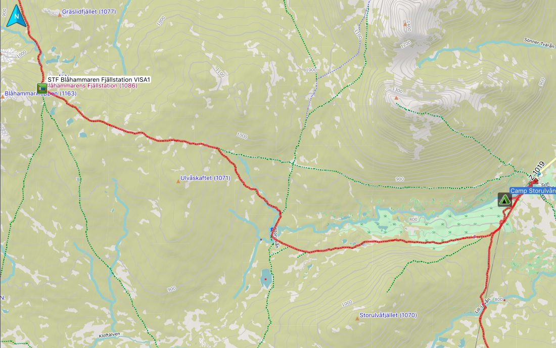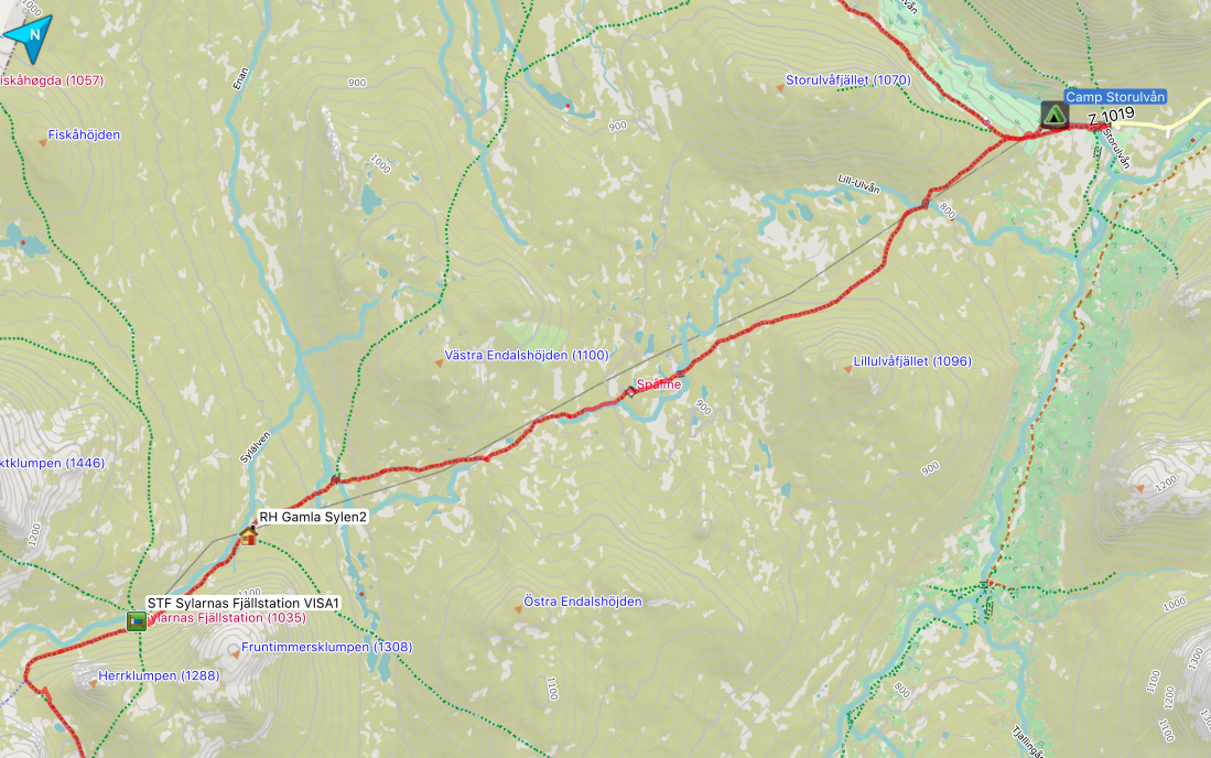 Aber auch die Tatsache, dass man sich nun mitten im Jämtlands Dreieck befindet, wird mit jedem Schritt deutlicher. Die Mitreisenden auf den Wegen nehmen zu und es ist nicht mehr mit den völlig vereinsamten Wegen der vergangen Tage vergleichbar. Ab der RH Spåime ähnelt es eher einem Wochenendtag in Torfhaus/ Harz. Aber nun gut, da muss ich durch.