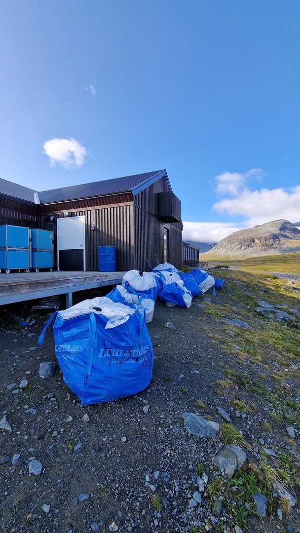 Ich gehe hinter den Häusern weiter, einfach weil es in dem Moment der kürzere Weg ist. Hier lagern Berge von Müll, verpackt in große BigPacks, welche auf die Abfuhr per Heli warten. Auch das gehört zur Wahrheit dazu, wenn so ein Luxuriöses Leben hier draußen, mitten im nichts ermöglicht wird.