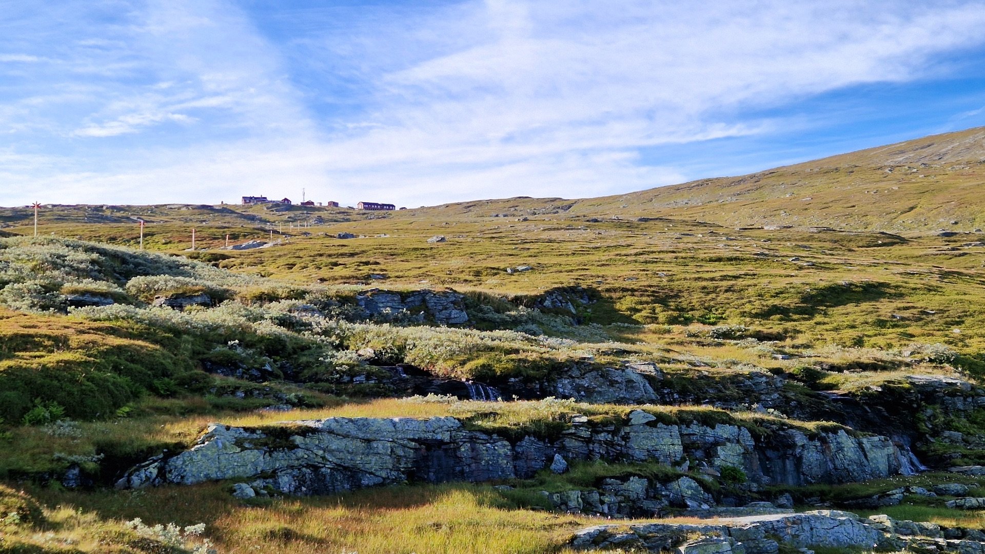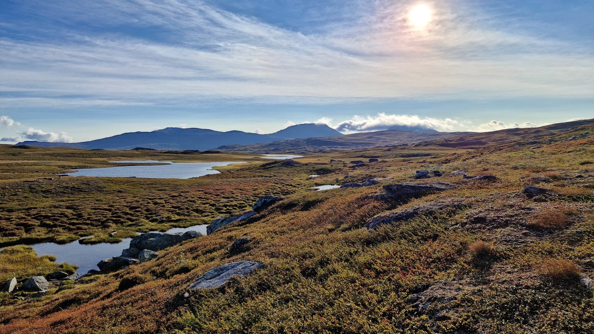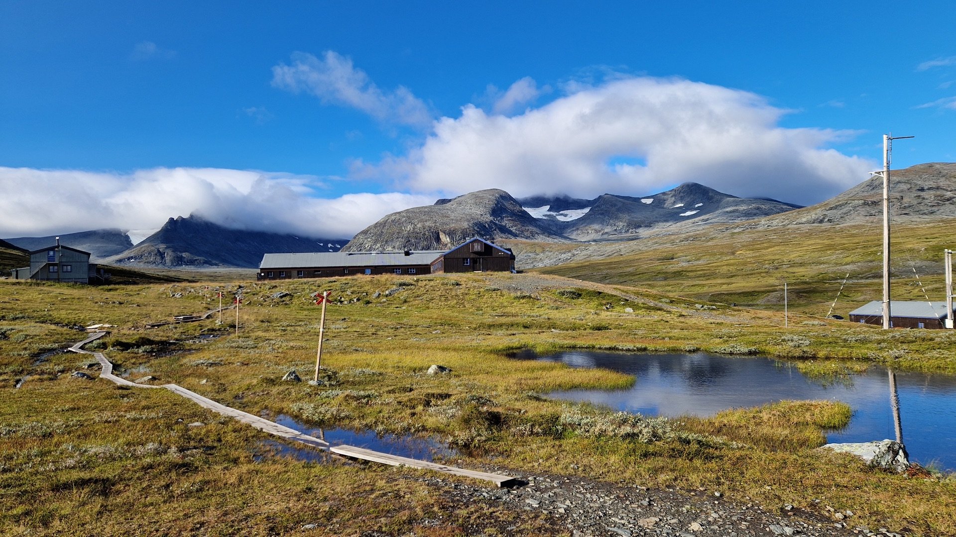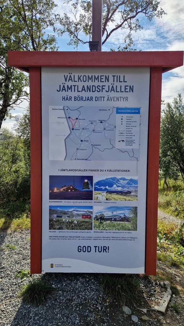 Vor der Fjällstation mache ich noch Fotos vom Sylarna bei Sonnenschein, gratuliere meiner Mum zum Geburtstag und dann geht es los.