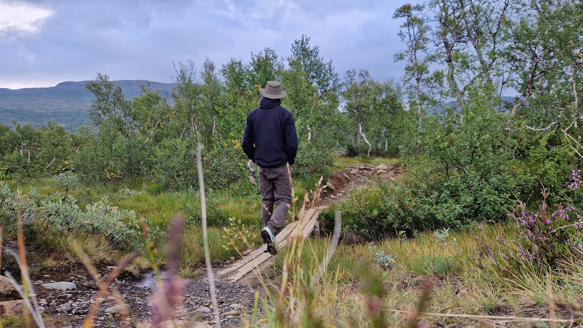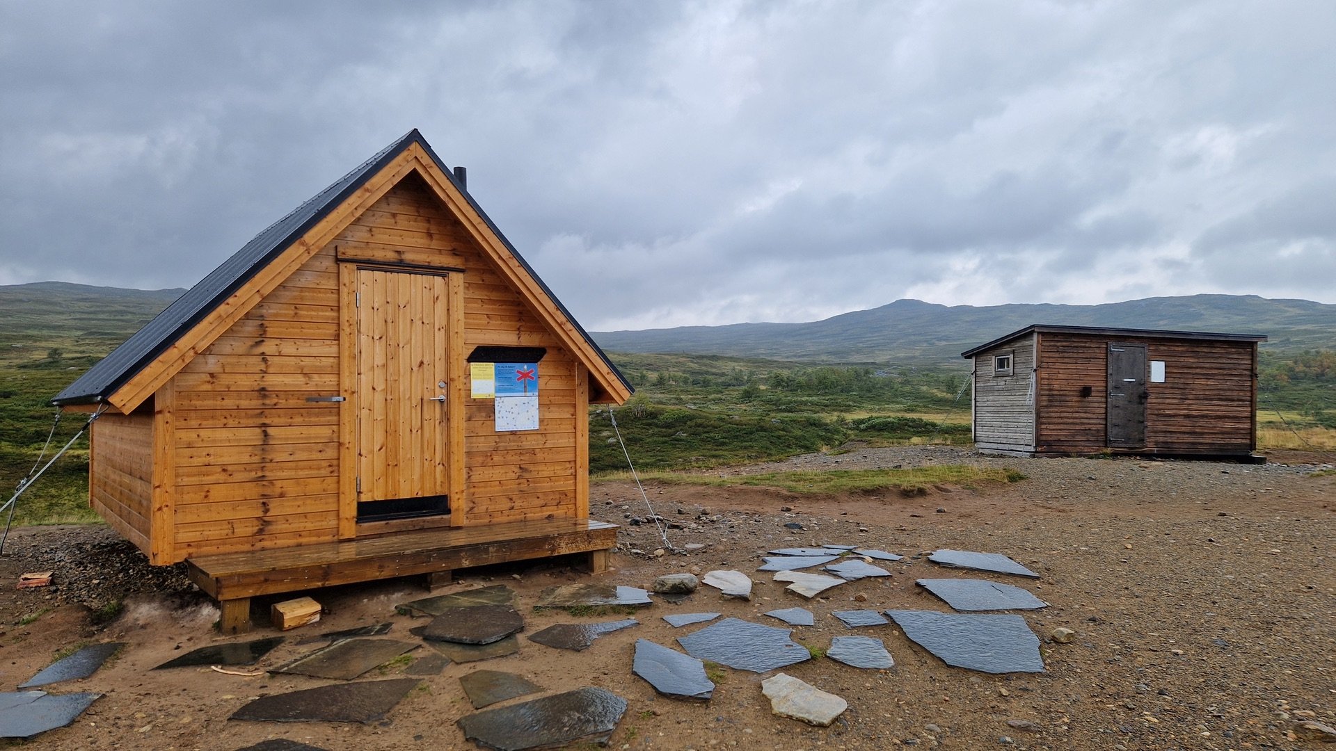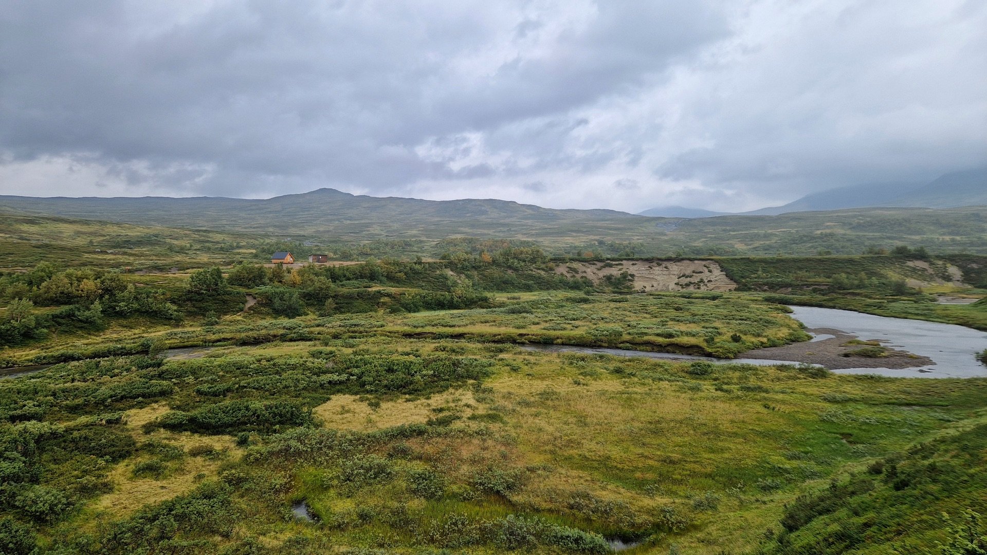 Bei einer kleinen Rast an der Gamla Sylen Schutzhütte zücke ich erneut die Karte. Ich könnte an der nächsten Weggabelung den Kungsleden verlassen und mich Richtung Storulvåns Fjällstation begeben. Dort haben die Flüsse Stor-Ulvån und der Handölan ein breites Tal in die Landschaft gegraben, welches durch die vorgelagerten Berge perfekt vor dem drohenden Sturm geschützt liegt. Zeit ist genug und einen Versuch ist es Wert. Sonst wird weiter improvisiert.