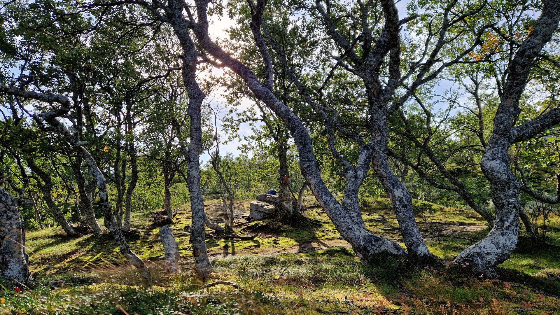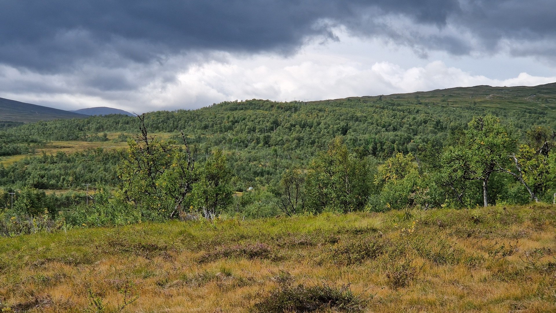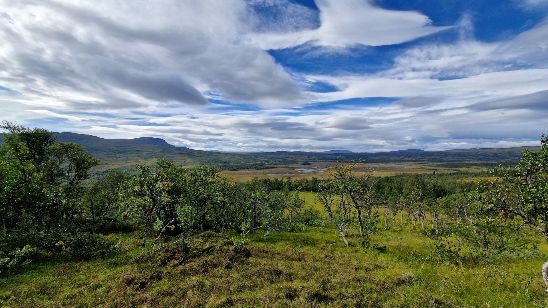Schon bald ändert sich wieder das Landschaftsbild und die ersten Birken tauchen auf. Auch die angekündigten Wolken kommen immer näher und haben den Wind im Gepäck.