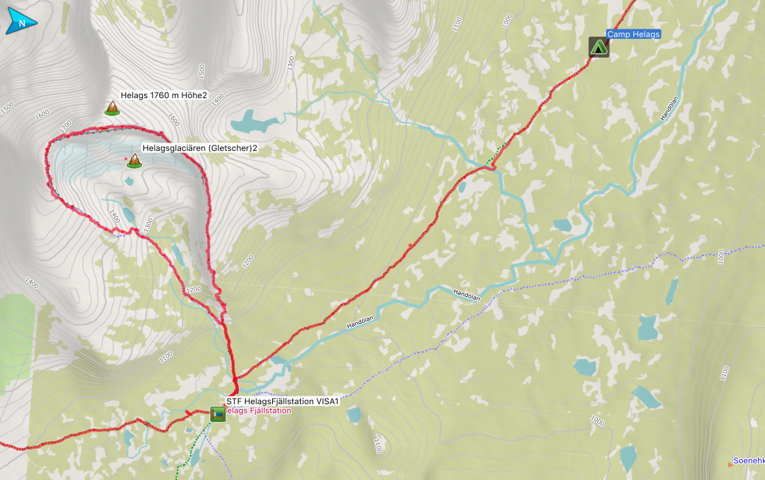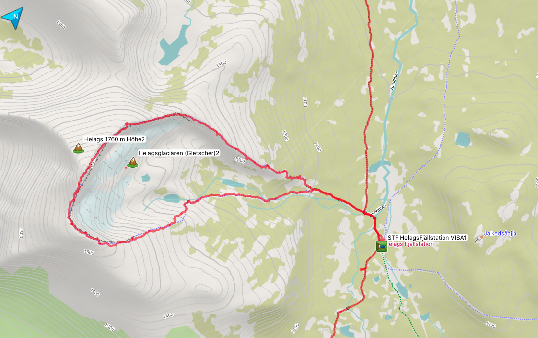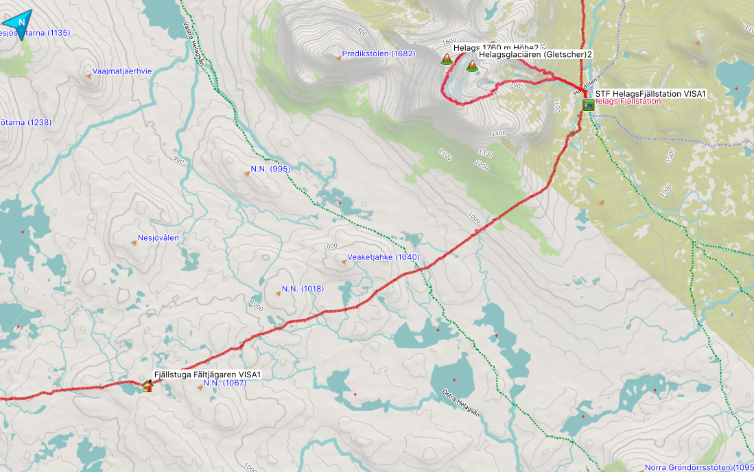 • 8. STF Fältjägaren Fjällstuga – STF Helags (13,3 km) 503m rauf - 526m runter