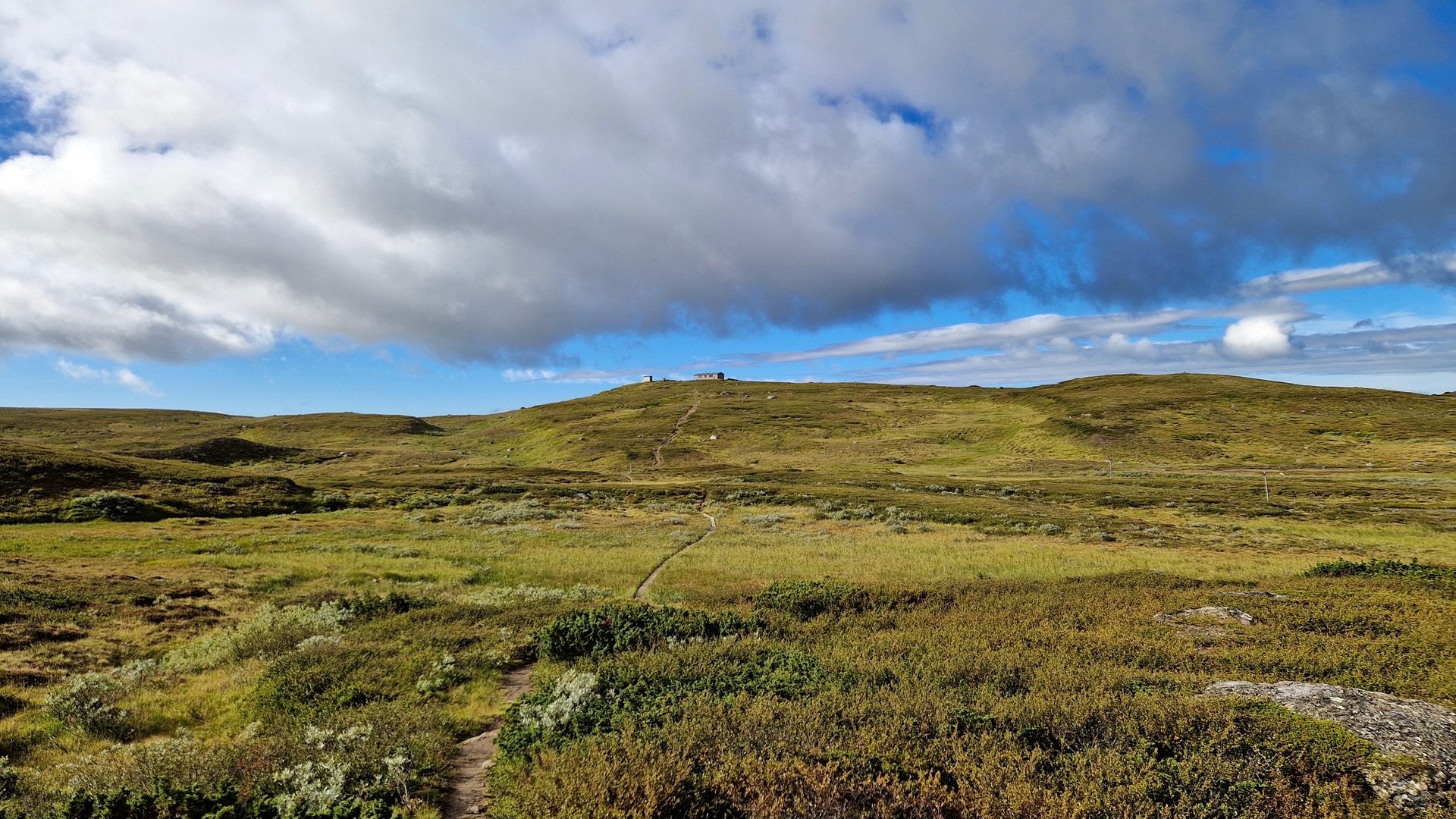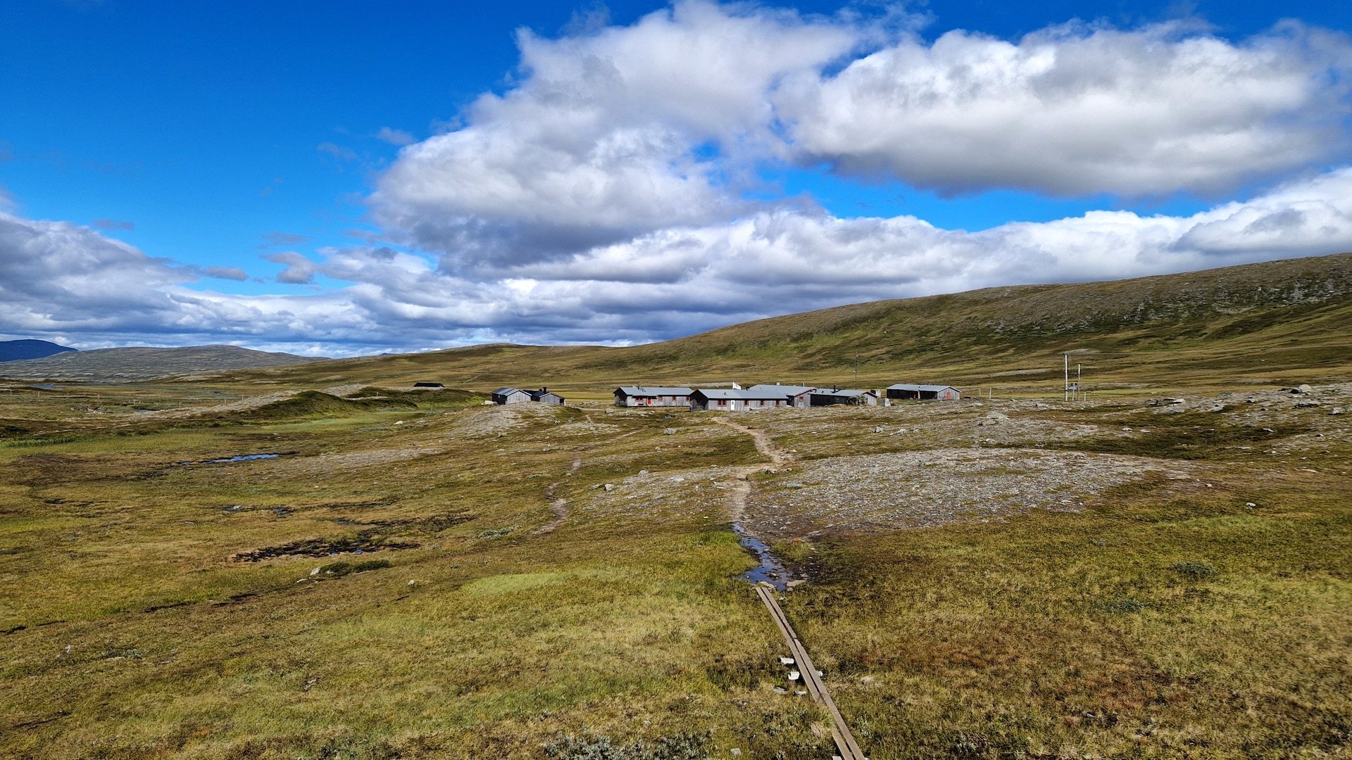 Hier oben hat der Wind auch noch eine Schippe drauf gelegt und ich bin froh, als langsam in der Ferne die Häuser der Sylarna Fjällstation auftauchen.