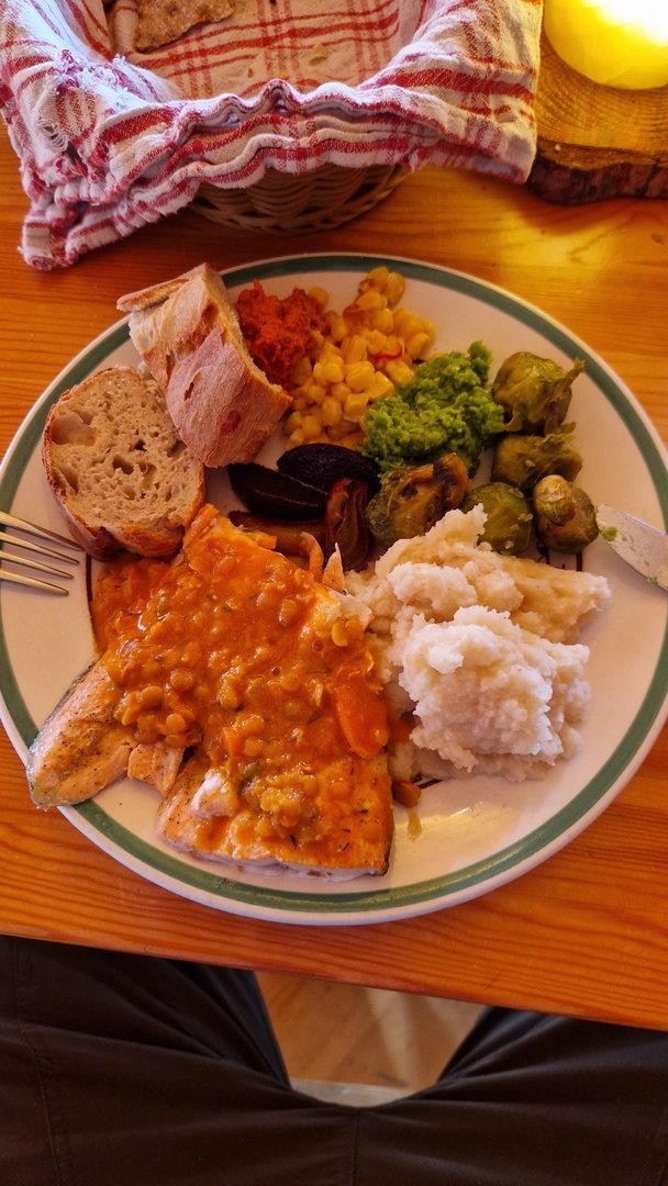 Die allgemein tolle Atmosphäre, das leckere Essen und die netten Gespräche am Tisch lassen die Preise jedoch vergessen. Ich sitze mit einem jüngeren Mann Mitte Ende 30 zusammen und wir erzählen uns von unseren Reisen. Er ist in Ljungdalen gestartet und hat sich schon am ersten Tag den Arm verletzt. Sein Handgelenk ist angeschwollen wie ein Apfel. Da es aber seine letzten Tage vom Vaterschaftsurlaub sind, hat er sich nicht beirren lassen, und ist trotzdem weiter gezogen.
