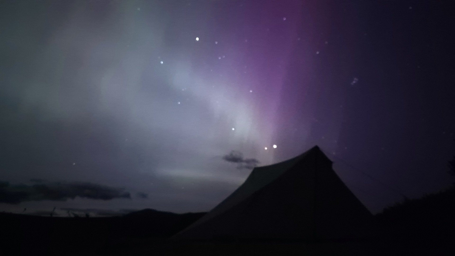 Mitten in der Nacht werde ich wach. Es ist arschkalt und ich muss raus zum Pinkeln. Während ich da so stehe und in den Himmel blicke, fallen mir weiße Schlieren am Nachthimmel auf. Ich hatte mal davon gehört, dass weniger intensive Polarlichter erst durch die Belichtung der Kamera wirklich sichtbar werden. In echt hatte ich bisher noch keine Lichter sehen können, aber einen Versuch ist es Wert. Ich ziehe mich wärmer an und hole mein Handy raus….und tatsächlich. Aurora Borealis gibt sich die Ehre, direkt über meinem Zelt. Ich kann mein Glück kaum fassen.