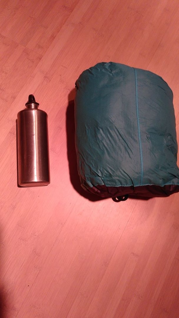Gewicht: 597g, also minimal schwerer als der Apexquilt (dürfte an etwas schwereren Schnallen und Gummis liegen), das Packmaß liegt etwa 1/3 unter dem Apexquilt