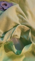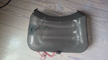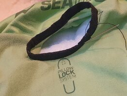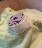 Zunächst habe ich eine Naht ein paar cm aufgetrennt, dann rund um das Ventil den Stoff zerschnitten, das Innenleben entfernt, die Nähte am "Entnahmegebiet" versäubert und die Schnittkante am Ventil-Loch umsäumt.