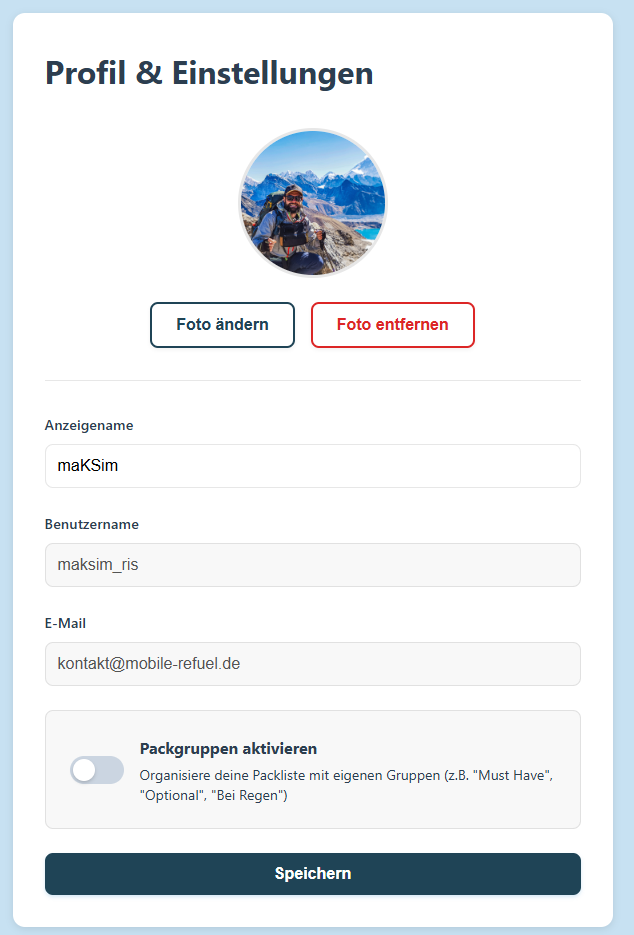 - Liste teilen: Generiere einen teilbaren Link für deine Packliste