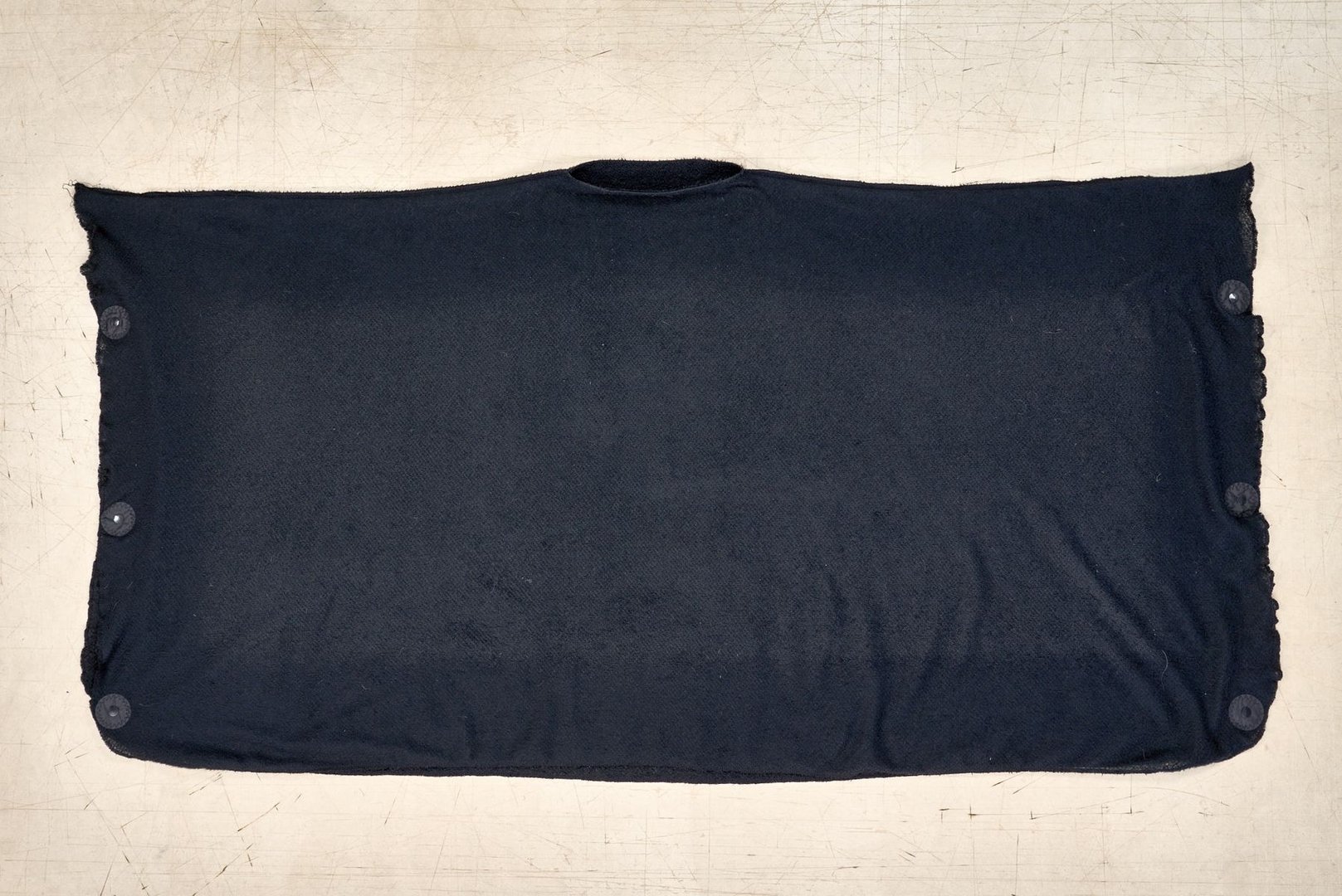 Die weiblich/männlichen CamSnaps sind so verteilt, dass man entweder den Poncho seitlich zuknöpfen, oder die Fläche in der anderen Richtung zu einem Schlauch verbinden kann. (Das Fußteil werde ich noch mit einer anderen Farbe CamSnaps verschließbar machen)