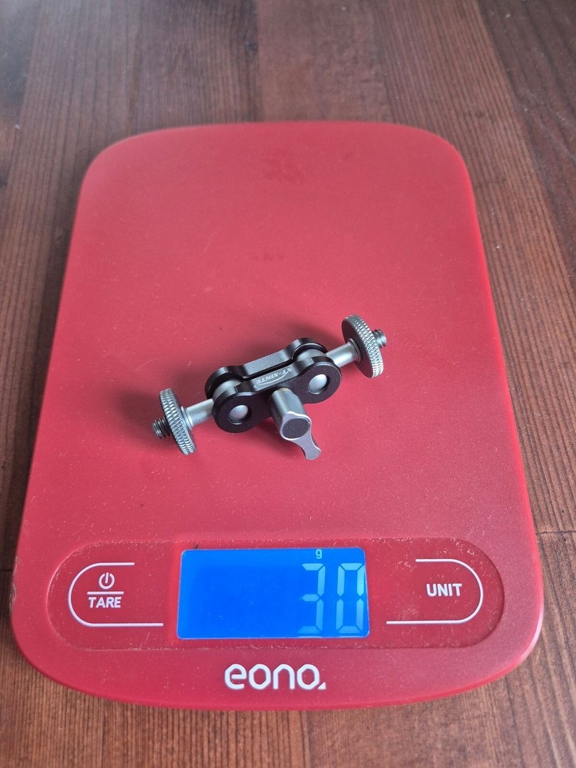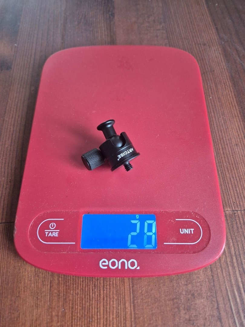 Ja, ein Kugelkopf braucht's dann noch. Schau auf Amazon nach koolehaoda Mini Kugelkopf, das ist ein sehr kleiner mit wenigen Gramm. Hätte ich selber mal als ich noch filmte. Der funzt prima am Stock und auch an entsprechender Befestigung am Boot, Pulka, Auto, wo auch immer.