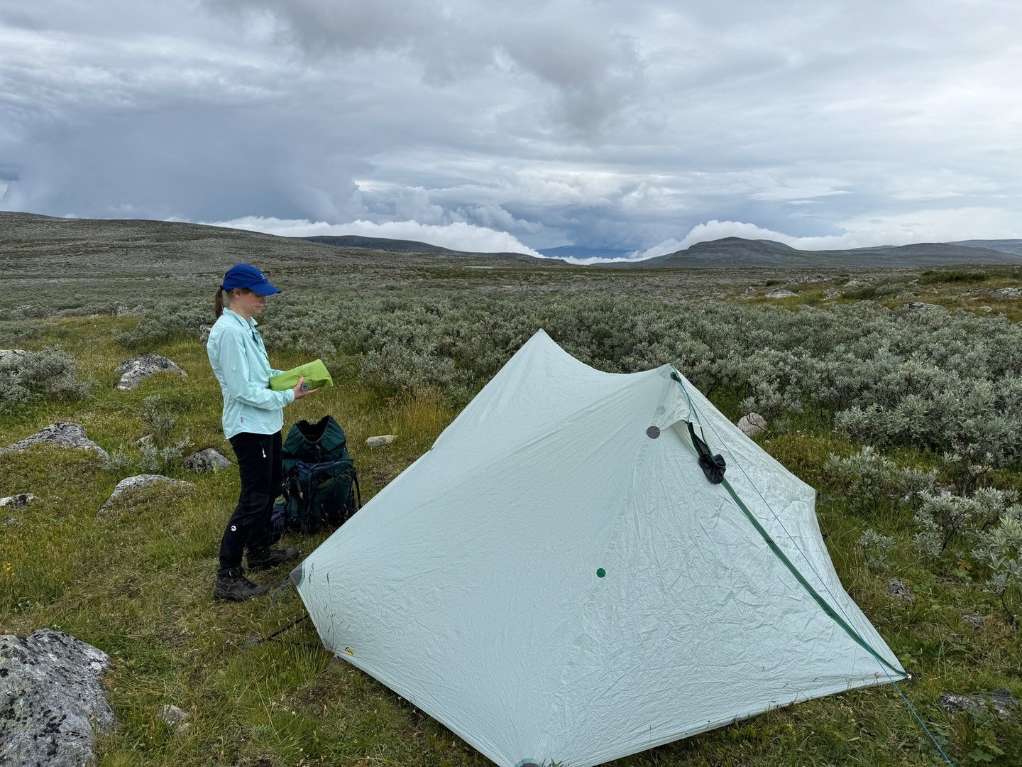 • Warst du schon mal in Skandinavien? Das Problem beim zelten ist erstens einen ebenen Platz zu finden und zweitens einen der halbwegs frei von Steinen, Gebüsch und Sumpf ist. Große ebene Felsplatten auf welchen man ein Kuppelzelt aufstellen könnte sind Mangelware.