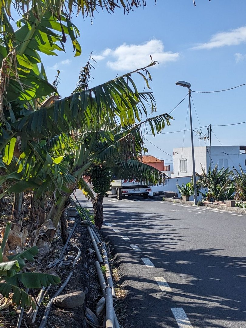 Unten beim Strand von Hermigua (Playa Santa Catalina) sind die ersten Bananenplantagen meiner Reise. Ein paar Surfer auf Ihren Brettern, die Wellen machen was her. Es geht die Teerstraße weiter bergauf bis Lepe, ab hier durch Terrassengärten über Fußwege und Treppen weiter bis Agulo.