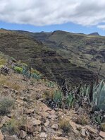 • Zur Frage, warum die Bauern weg sind: Haupterwerb auf La Gomera war bis zur Mitte des 19. Jh. die Zucht der Cochenille-Laus. Die Wirtspflanze ist der Feigenkaktus, der deswegen massenhaft in Terassenkultur angebaut wurde. Die Läuse wurden in einem aufwändigen manuellen Prozeß geerntet, getrocknet und verkauft. Man gewann aus ihnen den Farbstoff Karminrot, hauptsächlich für die Kosmetik- und Lebensmittelindustrie. Die Erfindung synthetischer Farbstoffe in der Mitte des 19. Jh., die viel billiger waren als die aufwändig hergestellten natürlichen, führte zum Zusammenbruch der Cochenille-Zucht auf La Gomera. Es folgte eine große Auswanderungswelle, hauptsächlich Richtung Venezuela. Deswegen die verlassenen Höfe.
