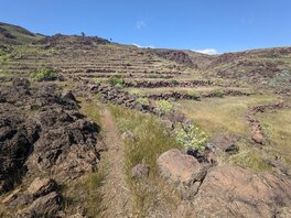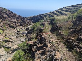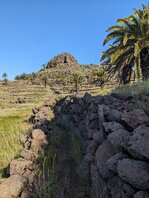 Vielleicht hätte ich mehr Wasser mitnehmen sollen. Normalerweise bin ich nicht zimperlich mit dem Trinken von ungefilterten Wasser, aber ich fürchte, dass wenn es nicht viel geregnet hat, der ganze Dreck wohl mit geschwemmt wird. Vielleicht koche ich eins ab. Aber es ist deutlich trockener hier, und so schnell das Wasser kommt, so schnell verschwindet es hier auch wieder. Nachdem ich aus dem Barranco de Chinguaime aufgestiegen bin, geht es zwar gemächlicher, aber immer noch bergauf. Terrassenanlagen. Soweit das Auge reicht. Verlassen & verfallen. Ich denke an all die Arbeit in der Hitze die erforderlich war, um all das zu bauen. Die Jahrzehnte, Jahrhunderte. Und heute würde man ein solches Land, oder zumindest die damit verbundene Arbeit, nicht geschenkt haben wollen. "Das gute alte Leben". Viel zu anstrengend. Salzige Haut? Wasch Dich Du stinkst.