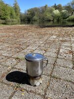 Mag sein, dass meine "normale" Kombi (ultimativer Dosenkocher +Titanwindschutz) ein bisschen effektiver ist; aber für den Filz Kocher ist diese Topfstand/Windschutz -Kombination die leichteste Option.