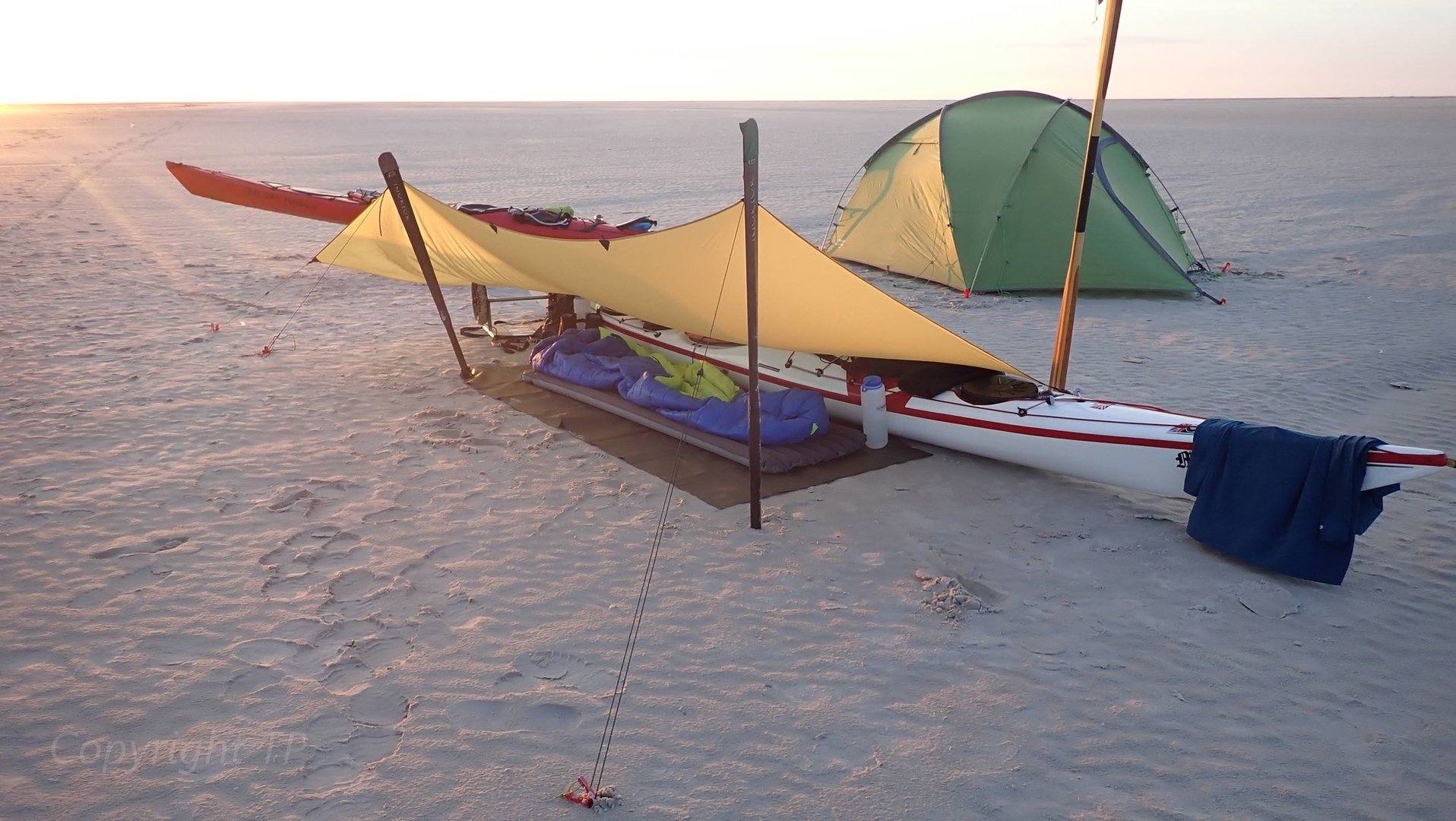 Jedenfalls interessiert mich grade, ganz im UL-Spirit, wie man Boote und Paddelausrüstung gut mit Tarps als Shelter kombinieren kann.