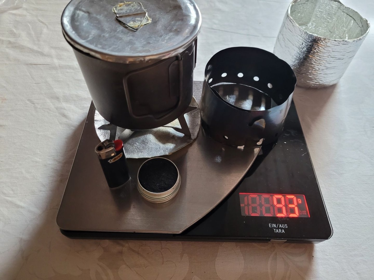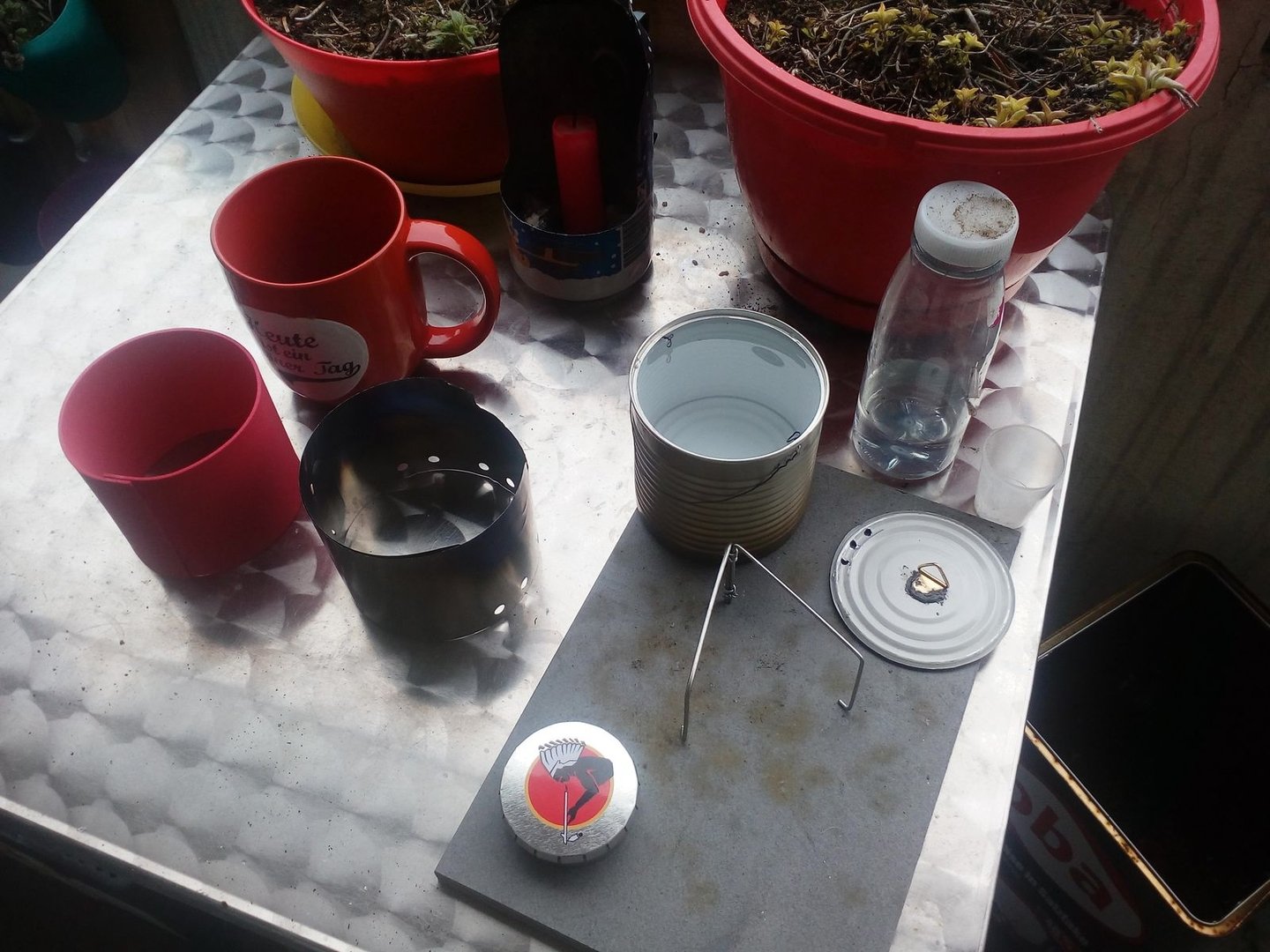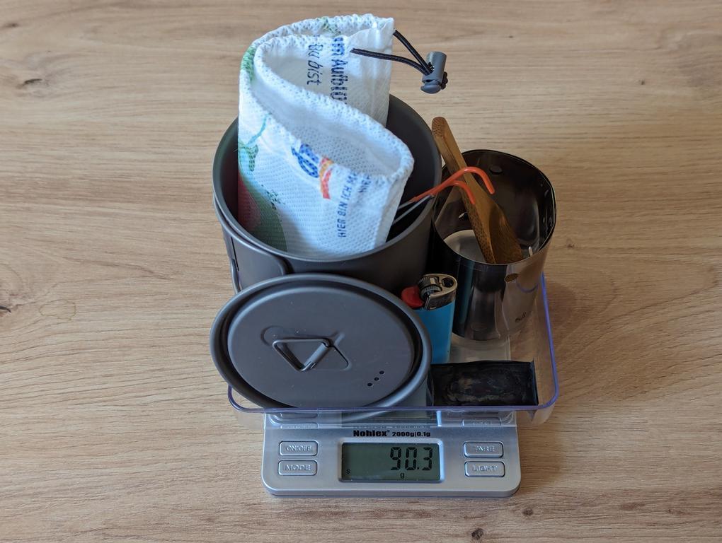 Der einzige gekaufte Gegenstand ist die GSI Bugaboo Tasse (414ml), der Rest ist eher aus dem Trashcraft-Bereich.