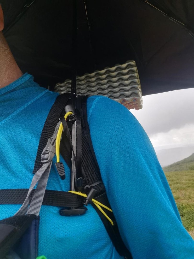 Er sollte mindestens eine Durchmesser von 90cm aufwärts haben, am liebsten wäre mir ja so ein Schirm der auch den Rucksack mit abdeckt.