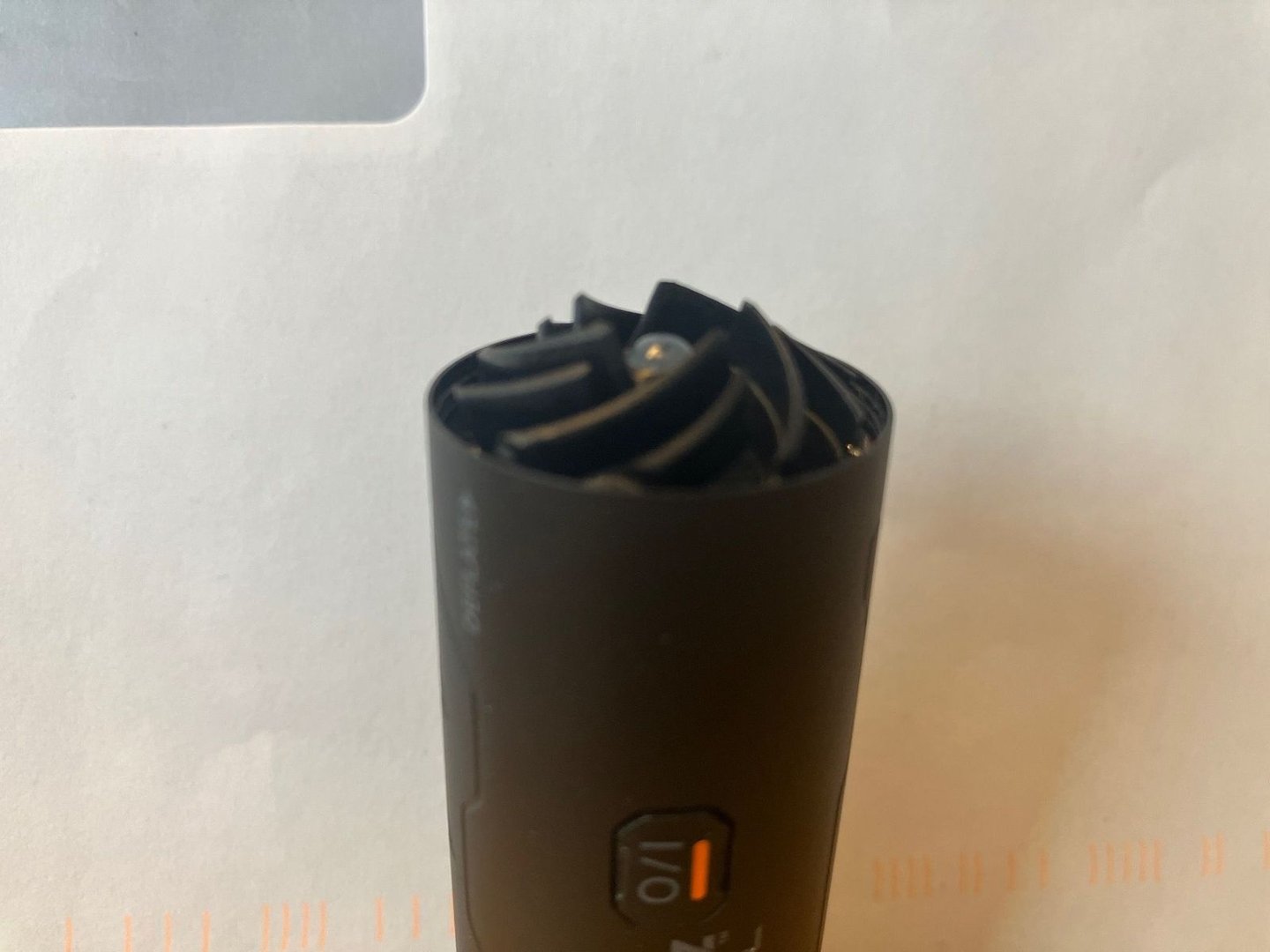 das Modell mit dem 1.2 oz-Aufdruck. Die nicht abgedeckten Ventilatorflügel laufen verdammt schnell, stehen schräg über und haben zur offenen Mitte hin scharfe Ecken, die am höchsten überstehen.