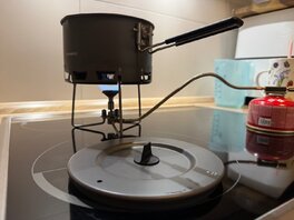 Dafür ist das Simmern des SOTO schon gut. Bin aus dem Grund mit dem Topf auch wieder von Titan auf Alu (beschichtet) gewechselt. (Womit wir wieder beim Problem wären, der ist nämlich enorm glatt / rutschig).