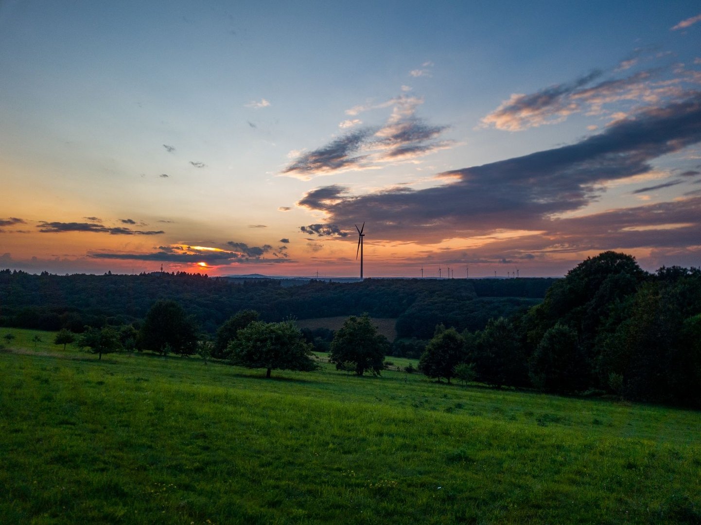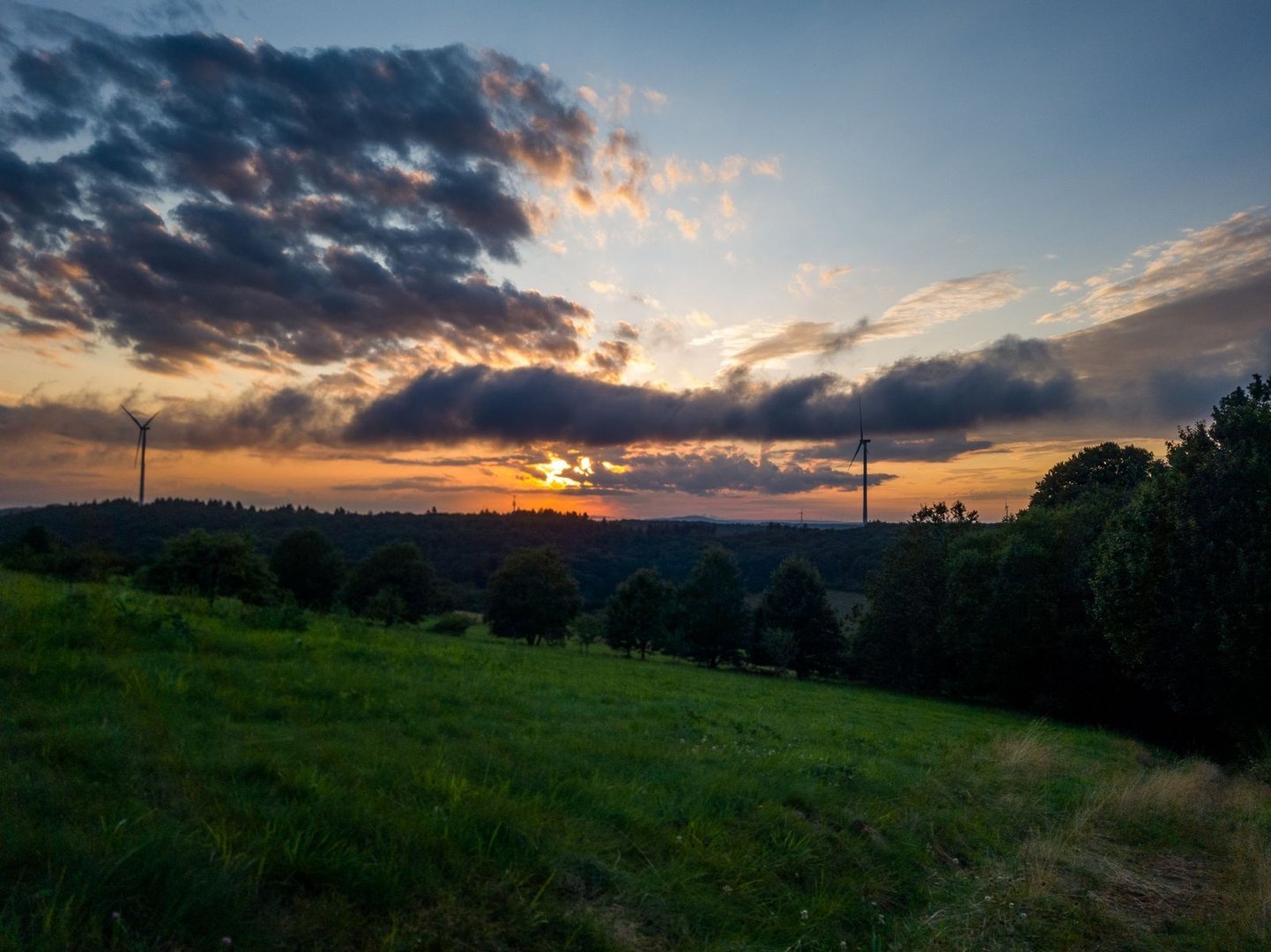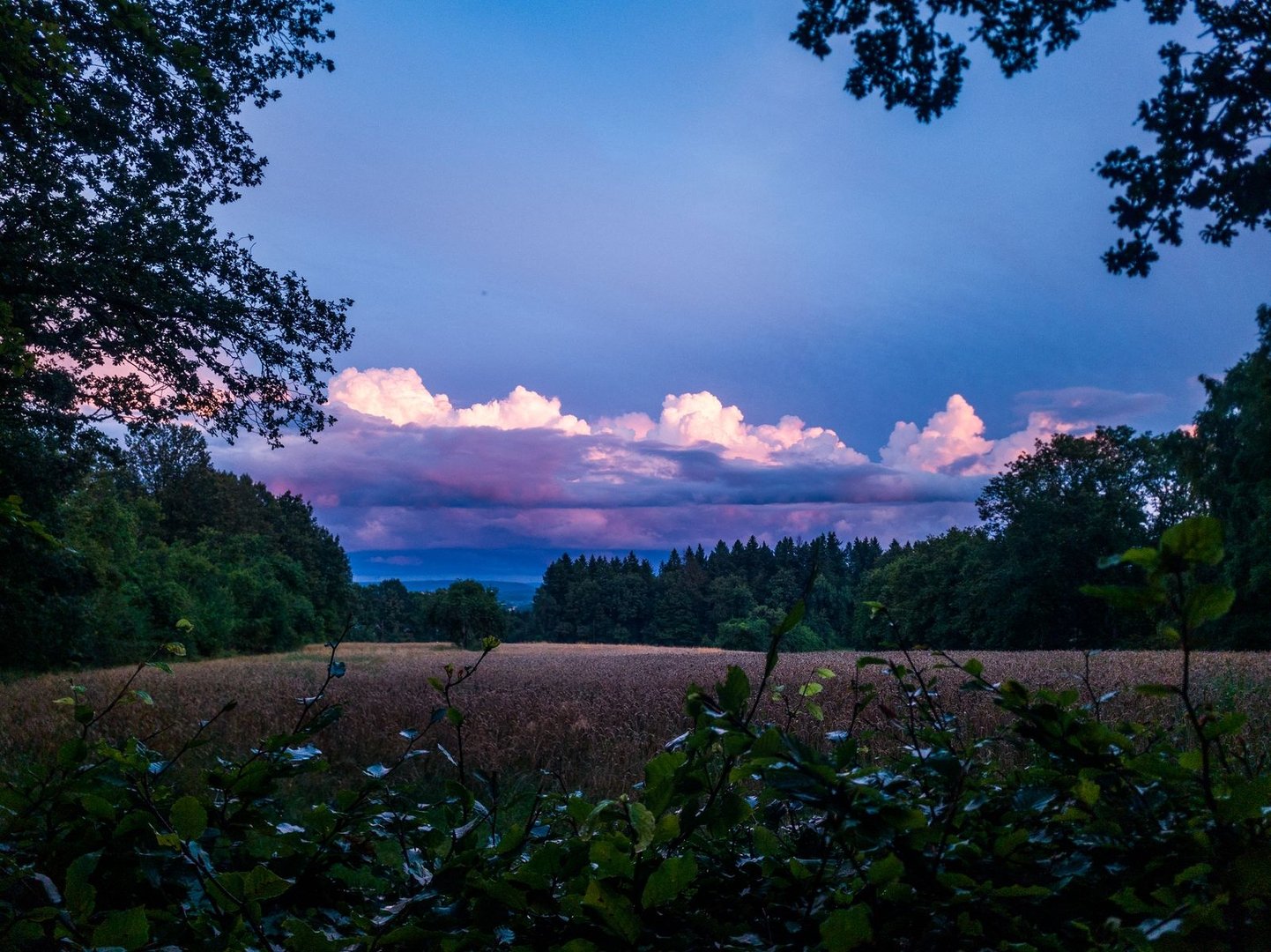 Bis zu meiner anvisierten Hütte waren es jetzt noch drei Kilometer. Der Himmel zog sich immer mehr zu und auch Gewitter konnte ich hören. In einer halben Stunde sollte es losgehen. Das schaffe ich doch locker, dachte ich mir und nahm die Hände in die Hand. An einem Bach nahm ich mir noch Wasser für den Abend mit, ehe es den letzten steilen Berg des Tages hochging. Im Trockenen erreichte ich die Spitzbubenhütte, in der ich schon an Ostern auf dem Bliessteig übernachtet hatte. Ab jetzt verläuft der Weg nämlich parallel mit dem Bliessteig. Von den starken Gewittern gestern wurde ich zum Glück nur gestreift - in der Hütte war ich aber eh geschützt. Und nach einem wahnsinnig schönen Sonnenuntergang ging auch dieser Tag zu Ende.