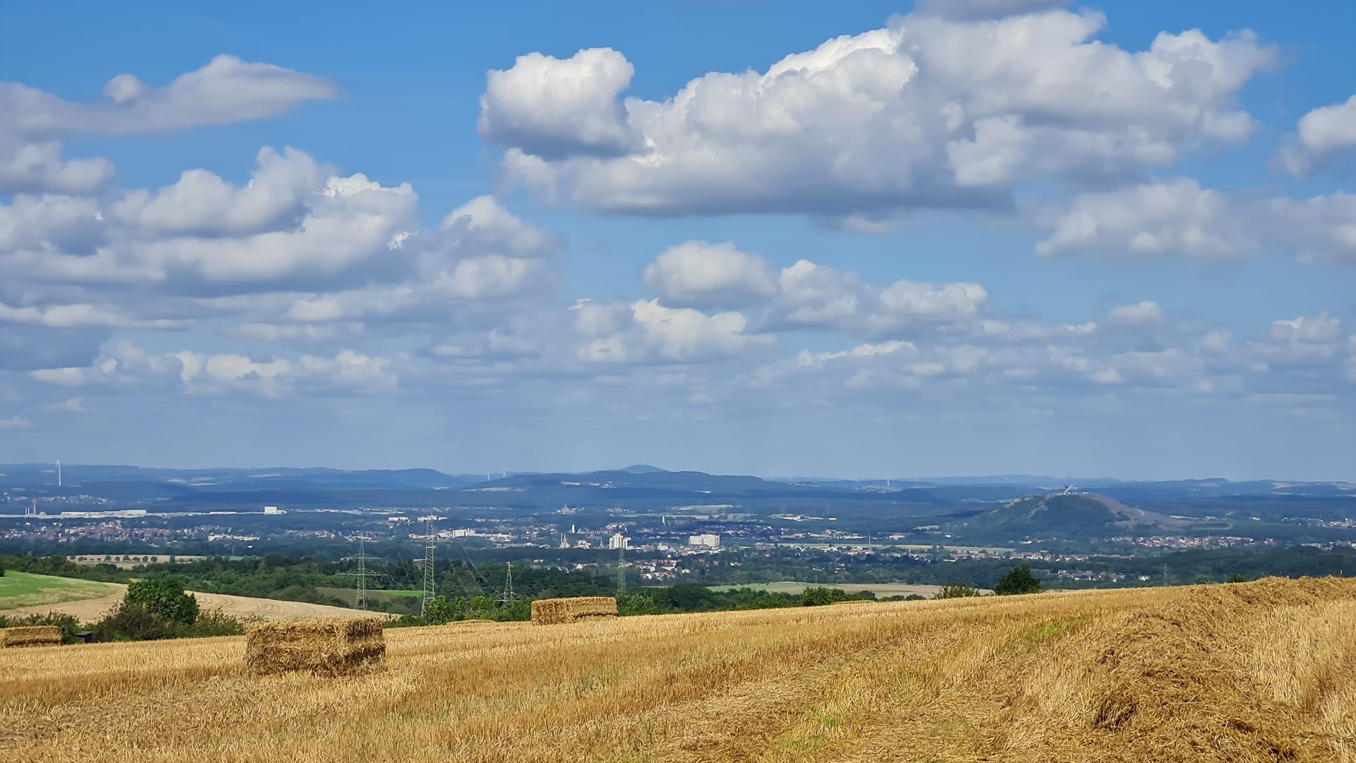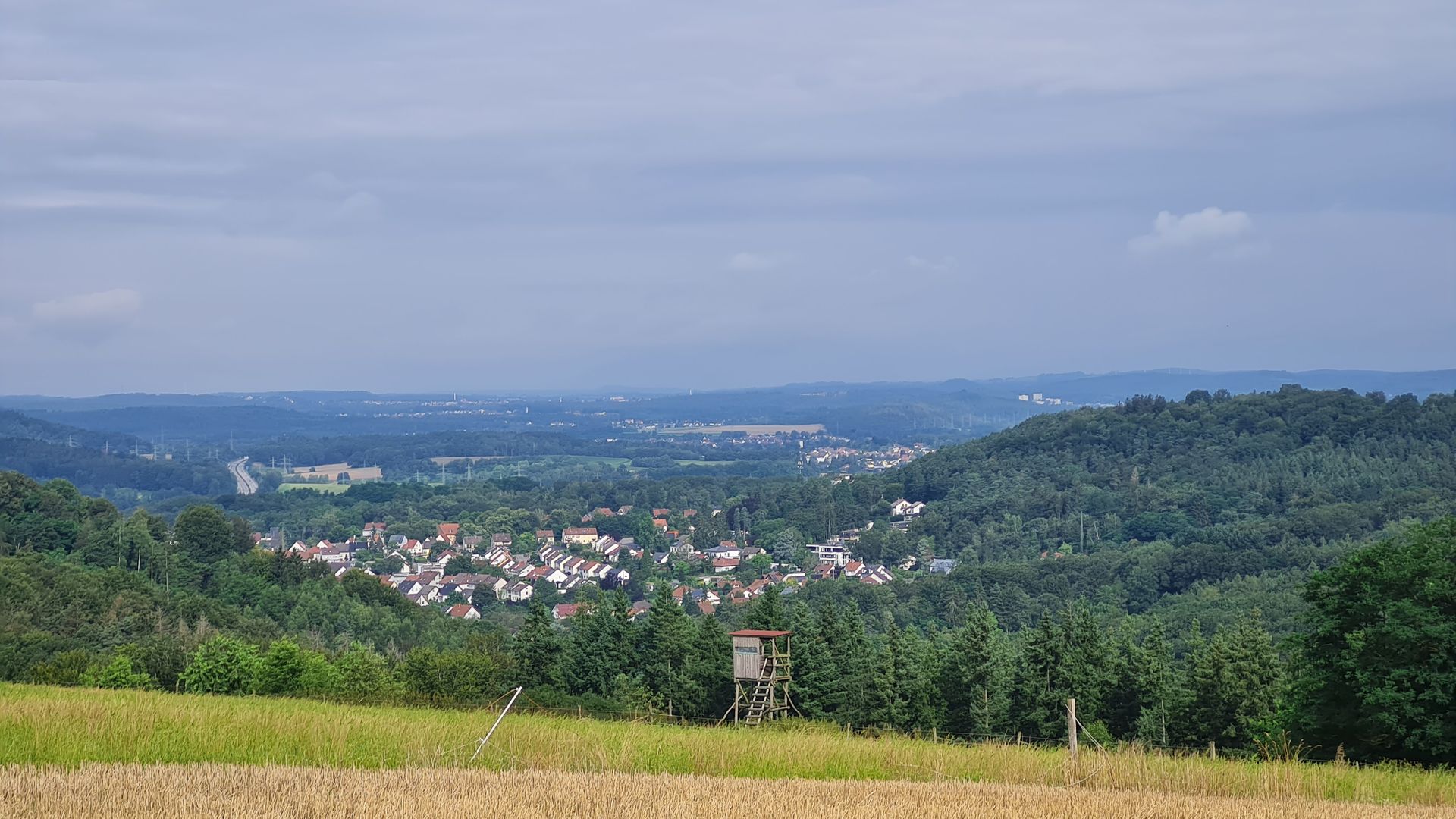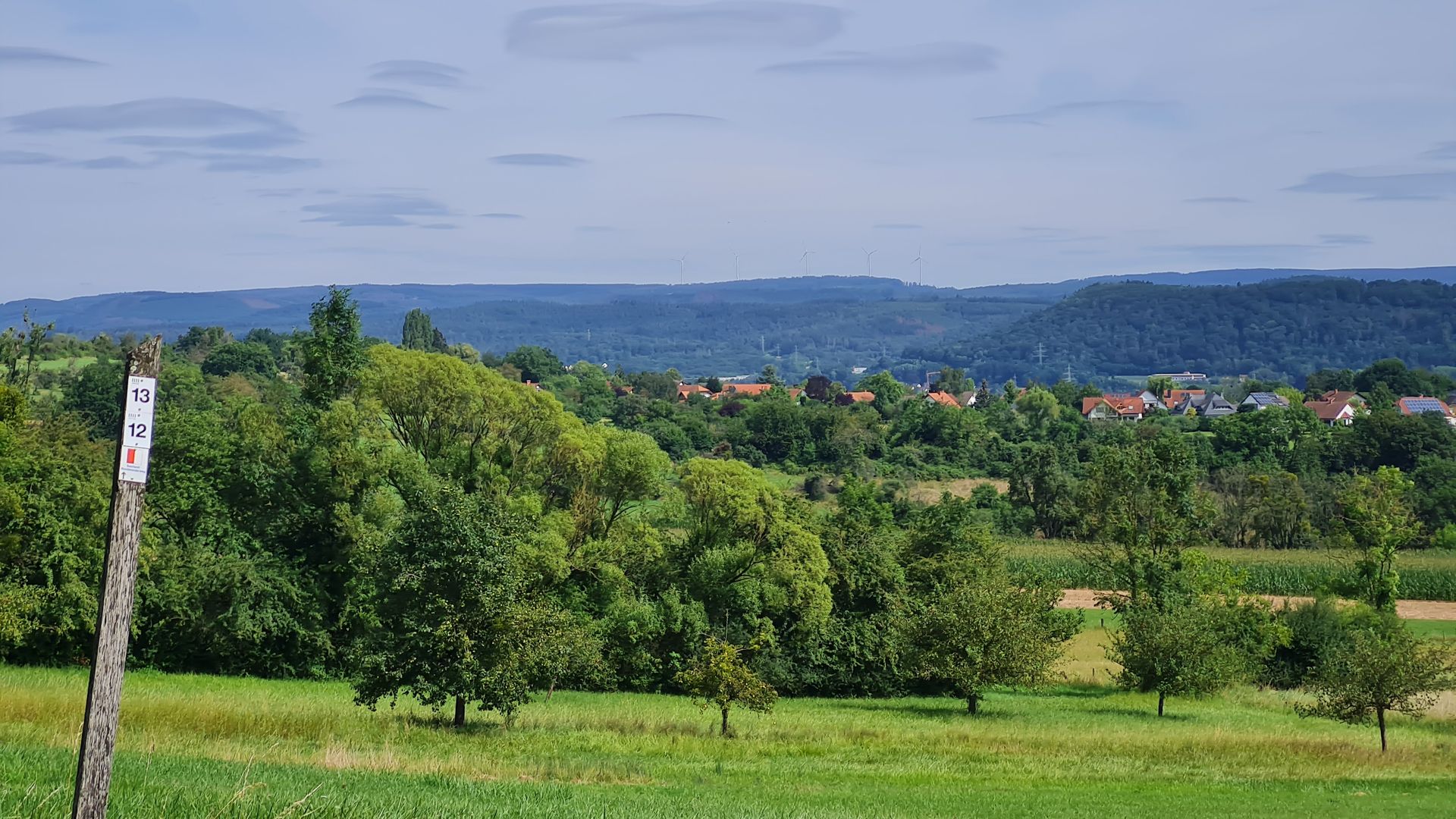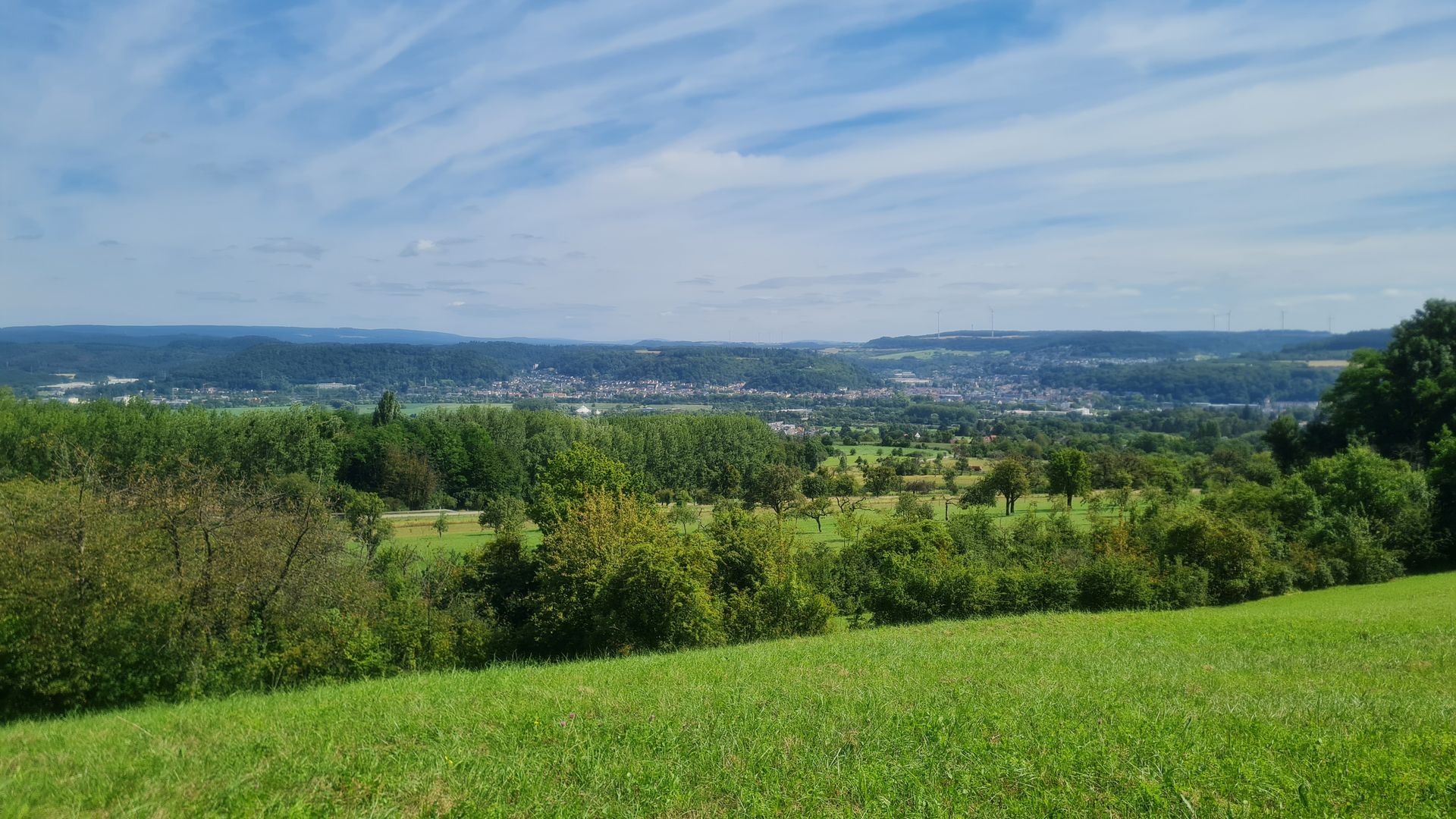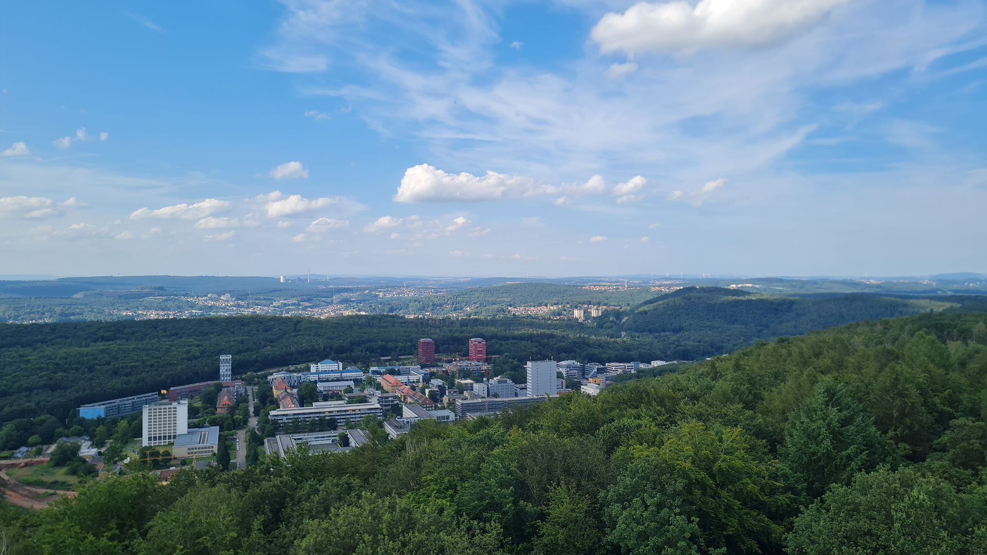 Als das Orgelspiel vorbei war, zog ich weiter zum Supermarkt, vertrödelte noch Zeit beim Bäcker, um weiter Strom zu laden und machte mich dann weiter. Steil und immer steiler führte mich der Weg aus dem Ort raus, bis ich bei einem Aussichtspunkt einen spektakulären Ausblick über St. Wendel genießen konnte.