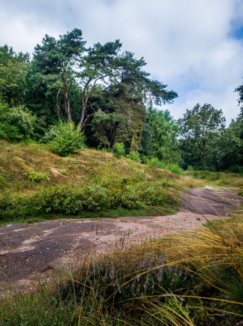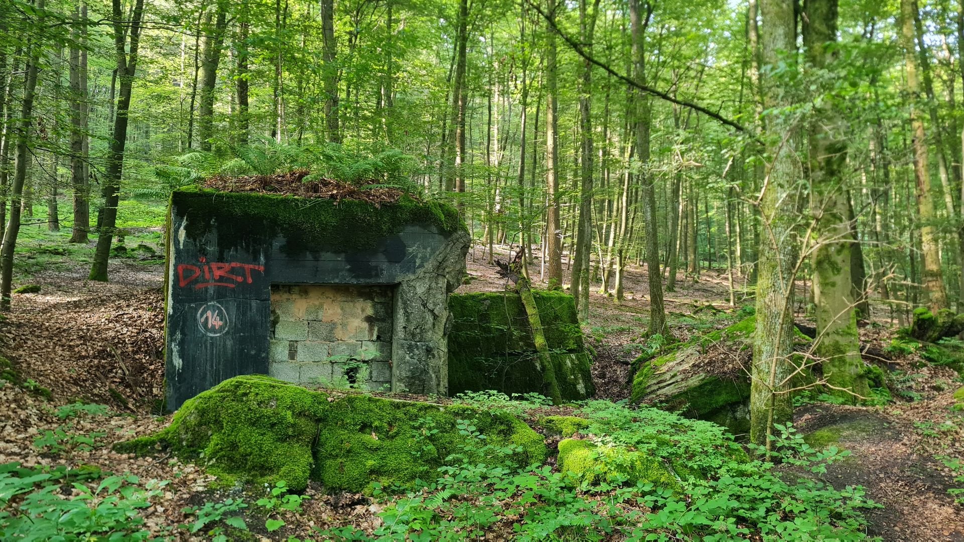 Zunächst ging es über breite Wege durch einen wunderschönen Wald. Dabei stieß ich noch auf einige Bunkerrelikte des Westwalls. Bei Hassel führten mich wieder schmale Pfade hoch auf den Kahlenberg, wo es mit der Kahlenberghütte eine weitere bewirtschaftete Hütte des Pfälzerwald-Vereins gibt. Die Wege waren richtig toll, leider war jedoch die A6 oft zu hören. Es erinnerte mich irgendwie an den Rheinsteig - tolle Wege, tolle Aussichten, Lärm aus dem Tal.