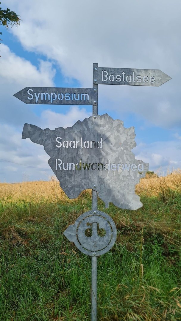 Seit ein paar Kilometern tauchten auch tatsächlich Wegweiser des Saarlandrundwanderwegs auf. So verabschiedete ich mich vom Saar-Hunsrück-Steig und folgte meinem Weg auf einem direkteren Weg, als der Saar-Hunsrück-Steig, in Richtung Nonnweiler. Auch der Saarlandrundwanderweg nimmt dabei ordentliche An- und Abstiege mit. Zwar mehr auf Straßen und Feldwegen, dafür aber mit tollen Ausblicken.